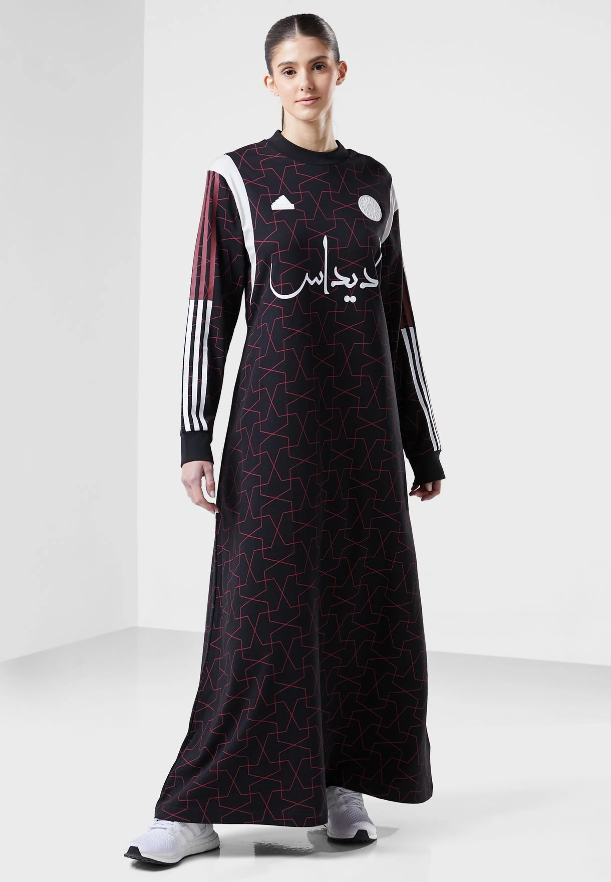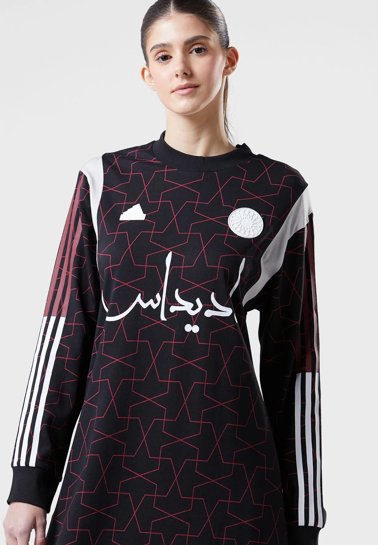 As all eyes turn to FIFA World Cup in Qatar, show your love for football in this full-length dress. The all-cotton fabric is lightweight and loose-fitting, making it a comfortable choice for warm days. The graphic says “adidas” in Arabic, a tribute to the hosts of the party. A minimum of 70% of this product is a blend of recycled and renewable materials. Our cotton products support more sustainable cotton farming.
