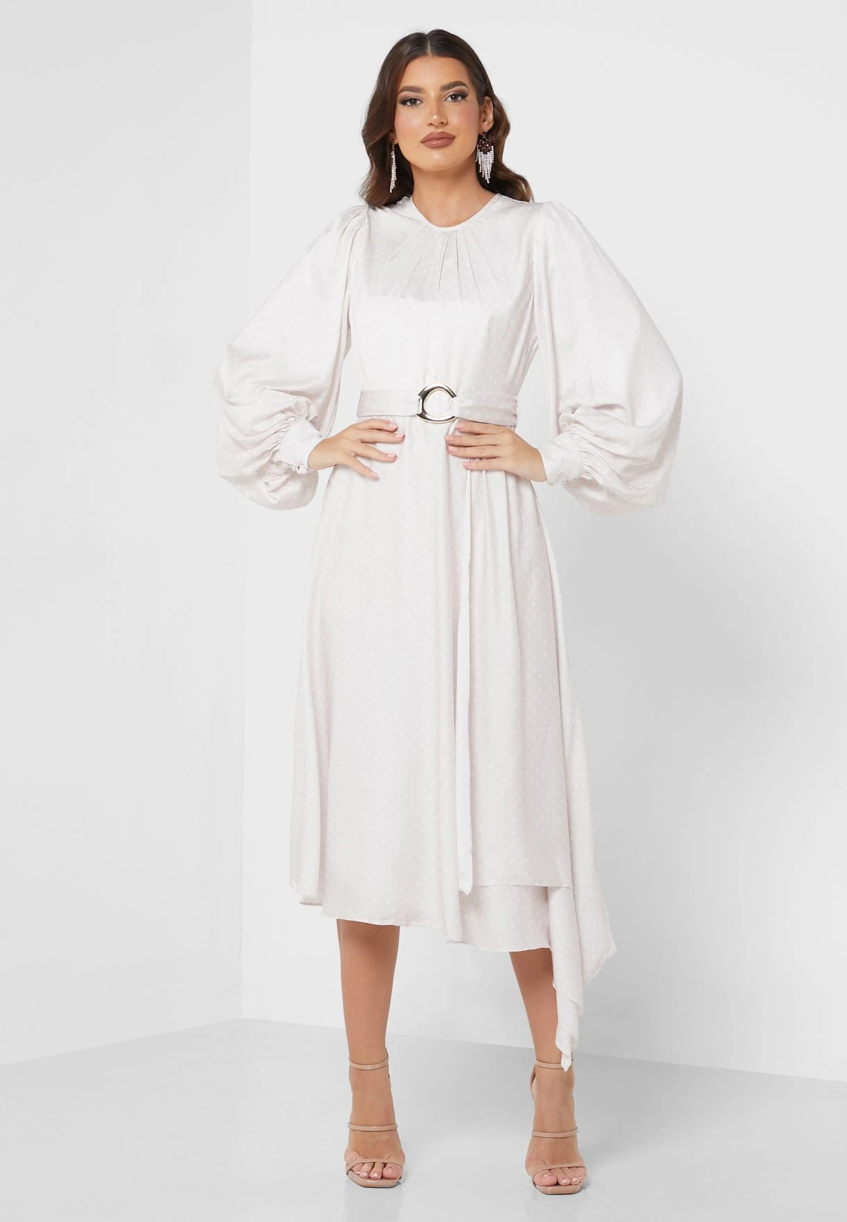 Balloon Sleeve Belted Dress