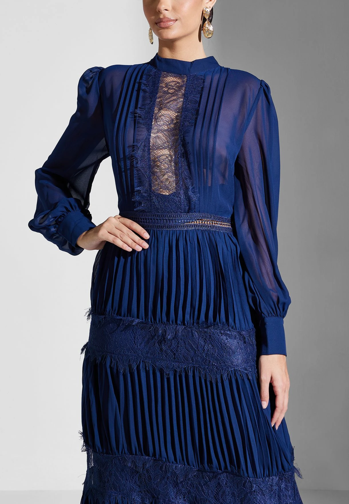 Be the first to review “Balloon Sleeves Lace Trim Pleated Dress” Cancel reply