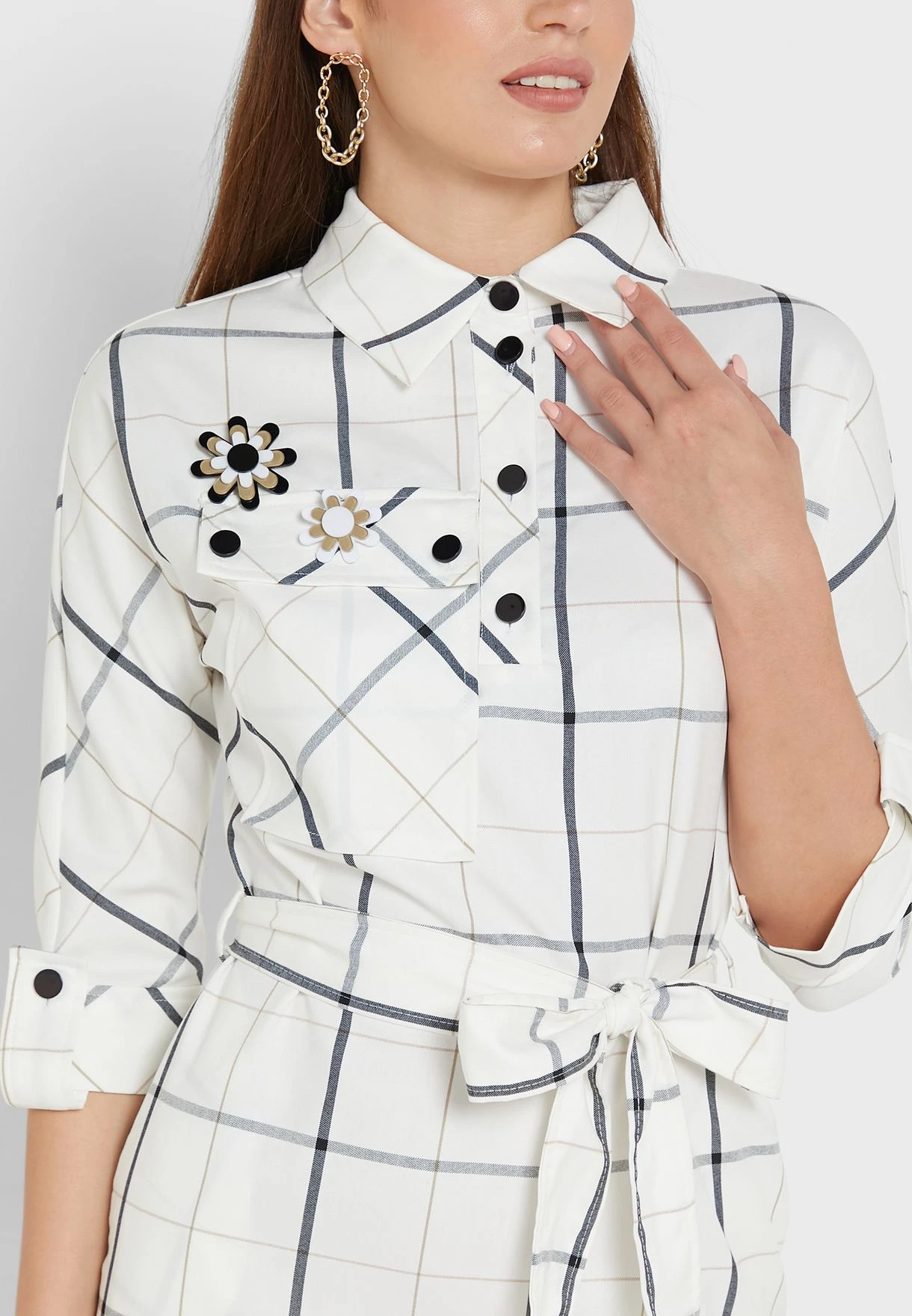 Be the first to review “Checked Belted Button Detail Dress” Cancel reply