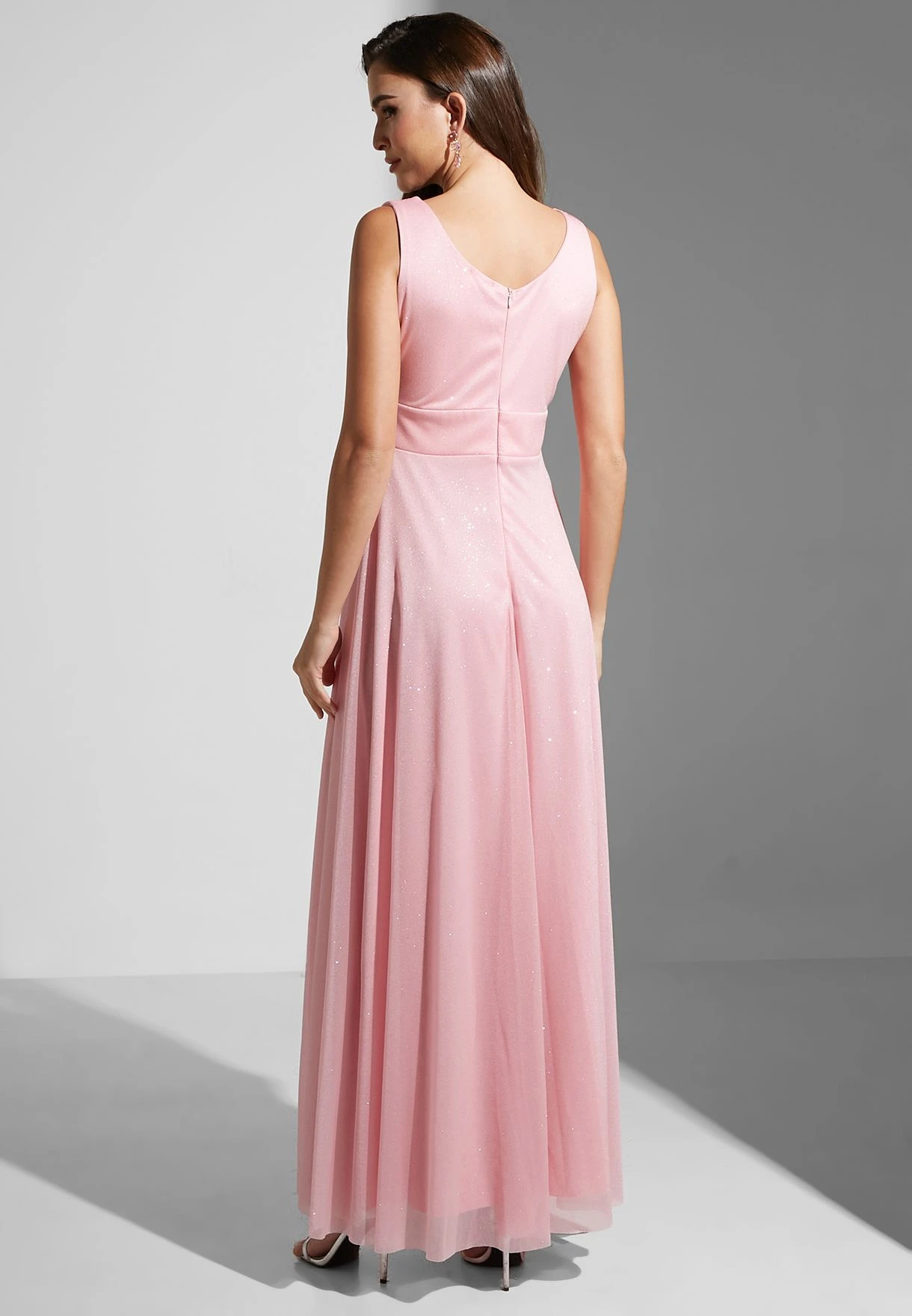Turn eyes at your next big event in this shimmery and embellished waist dress.