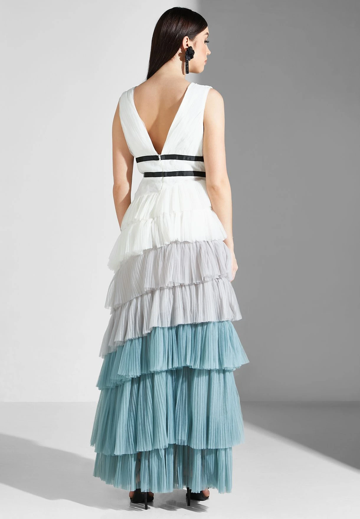 Be the first to review “Color Block Ruffle Plunge Belted Dress” Cancel reply