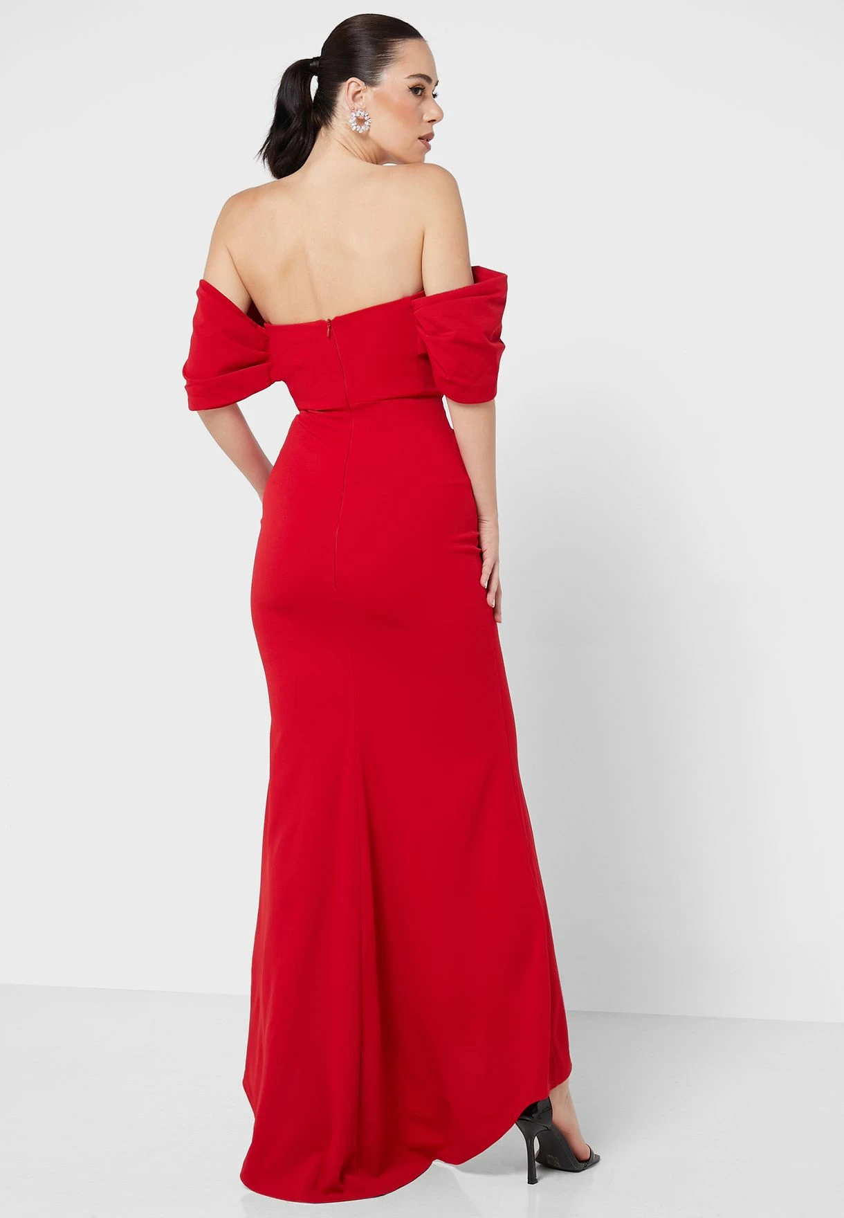 This flattering dress is intended for glamorous occasions and portrays an elegantly feminine aesthetic.