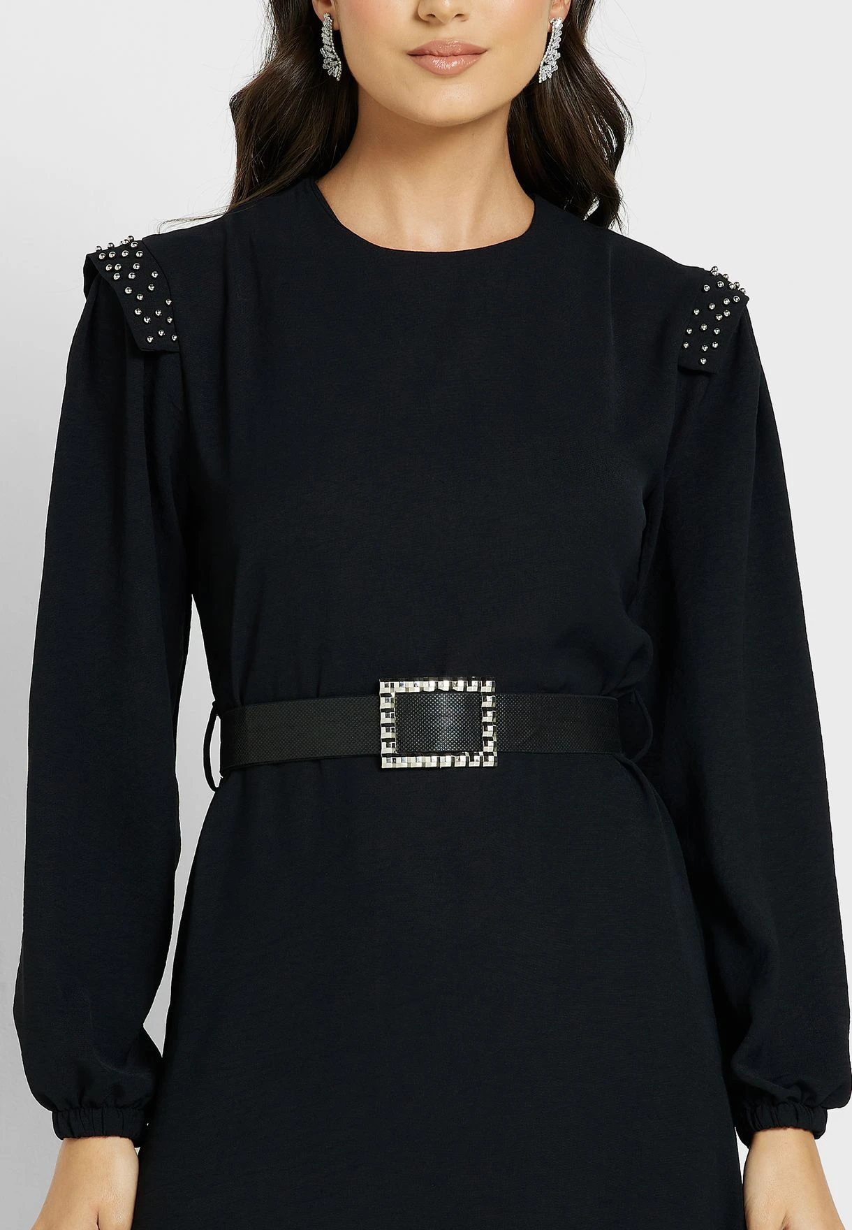 Be the first to review “Embellished Trim Belted Dress” Cancel reply