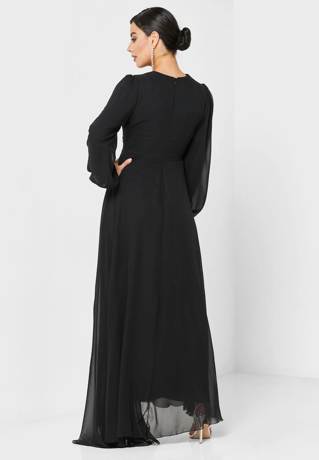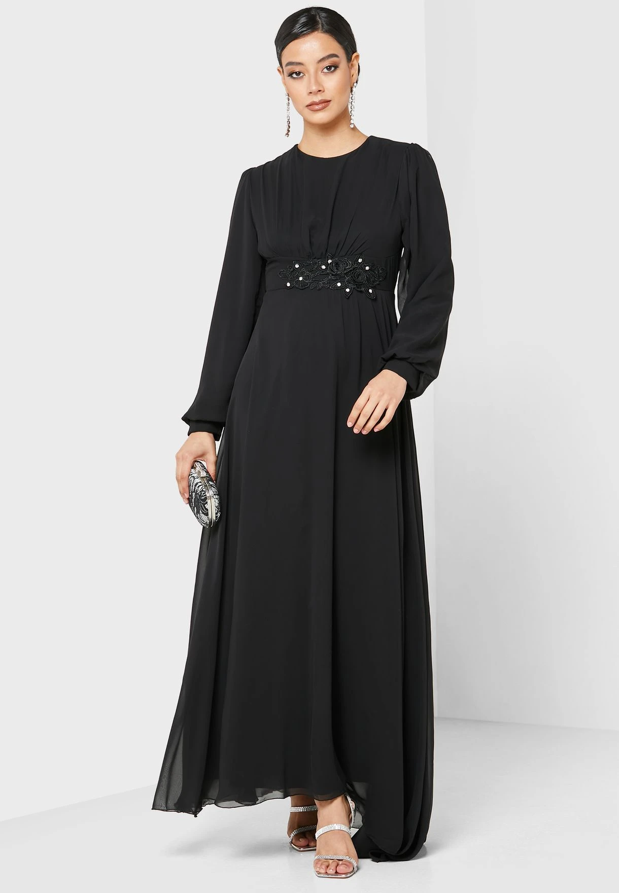 Completed with luxurious details, this dress brings a lavish finishing touch to your evening edits.