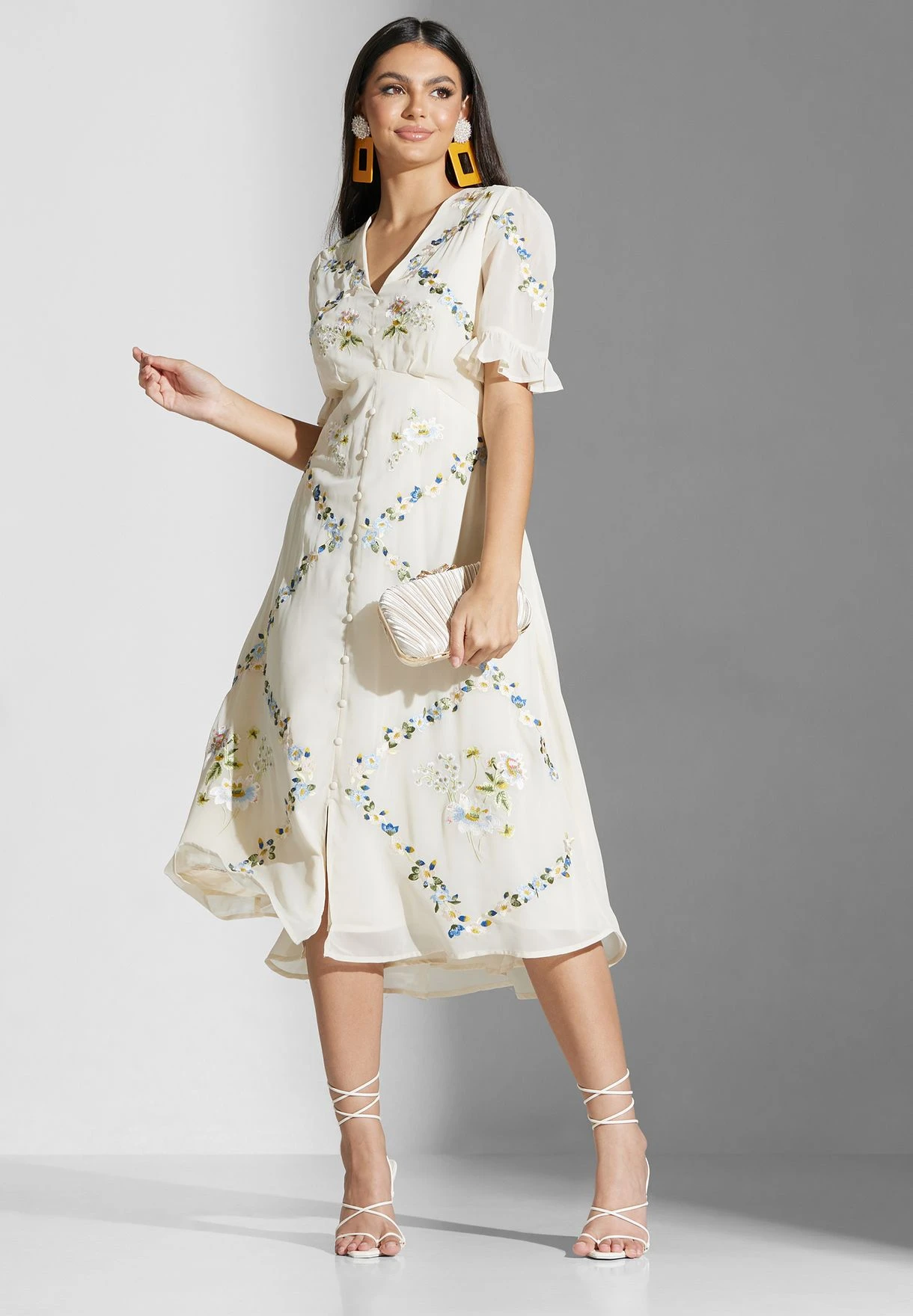 Be the first to review “Embroidered Button Back Cut Dress” Cancel reply