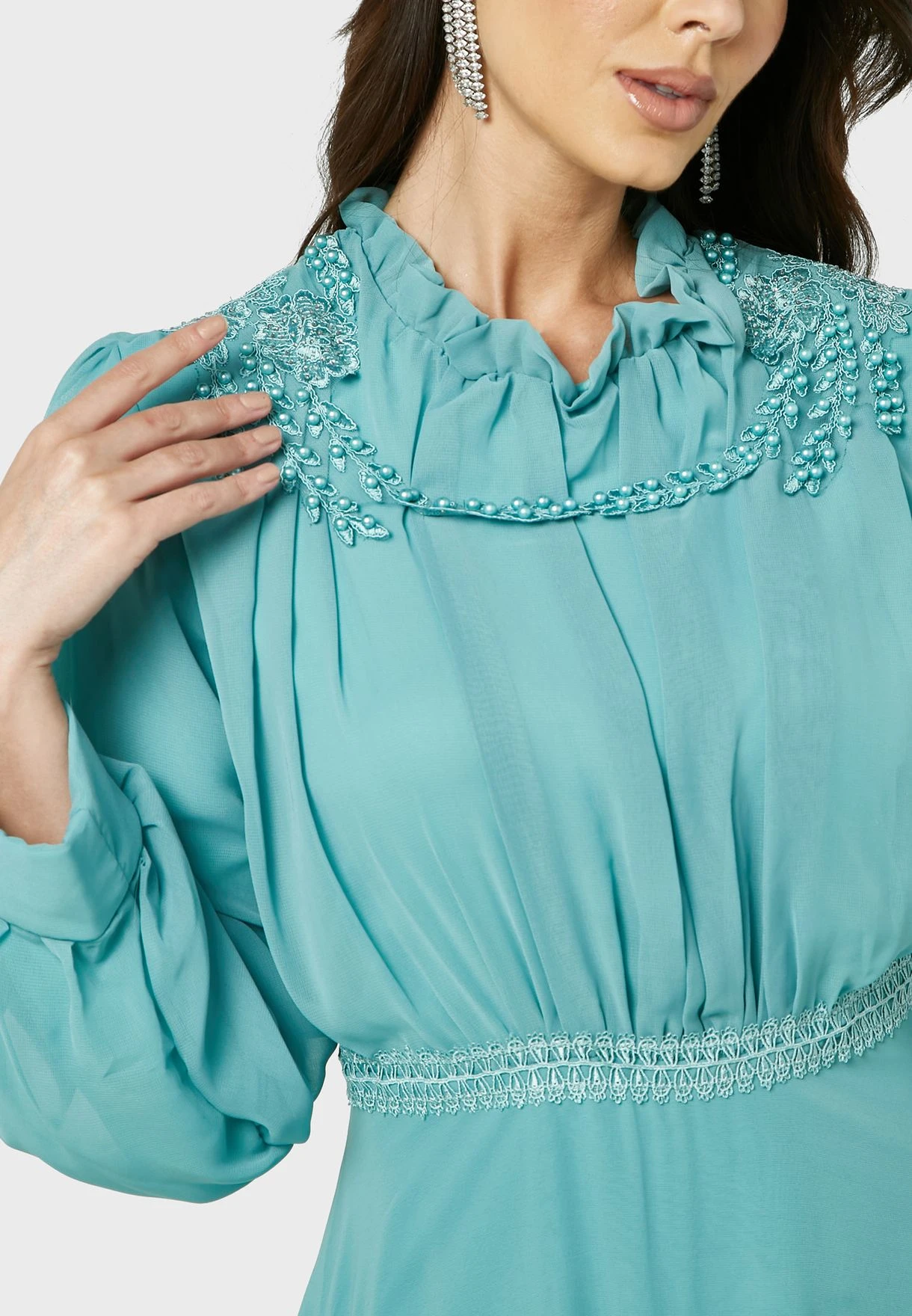 Completed with luxurious details, this dress brings a lavish finishing touch to your evening edits.