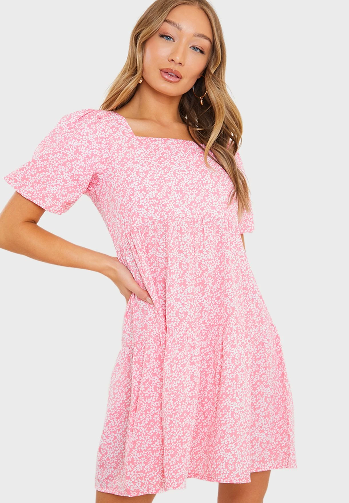 In The Style Floral Tiered Mini Dress