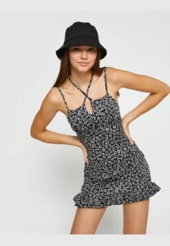 Koton Floral Mini Dress Strappy Cut Out Detail