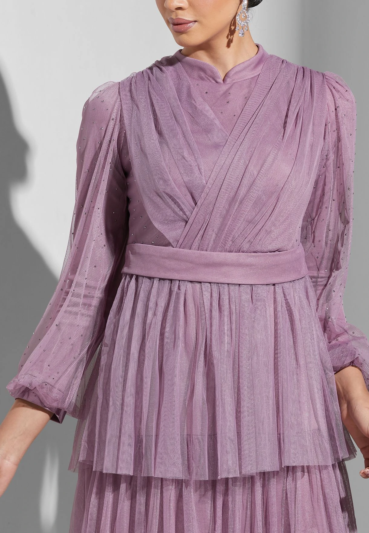 This flattering layered Tulle dress is intended for glamorous occasions and portrays an elegantly feminine aesthetic.