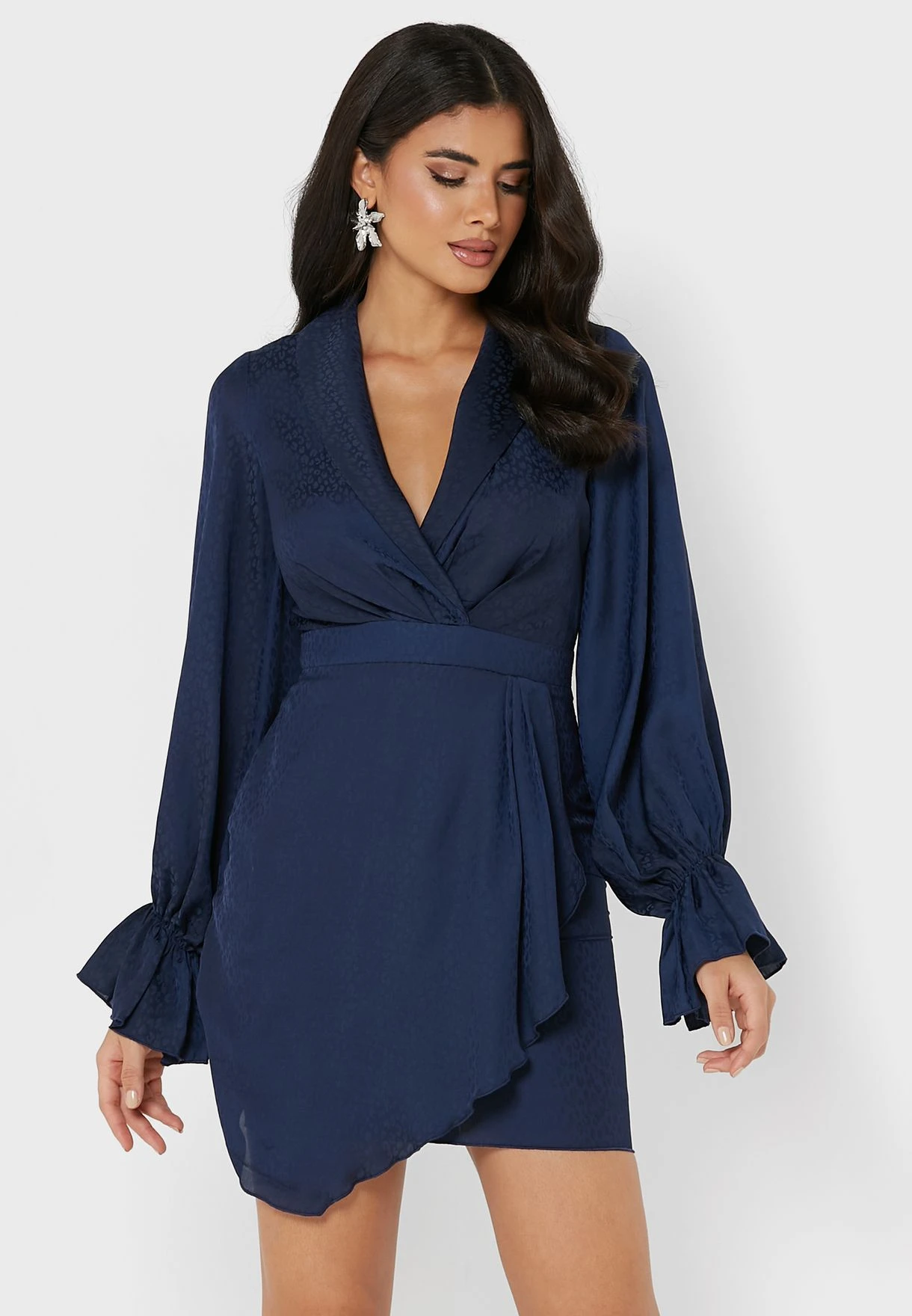 Little Mistress Balloon Sleeve Ruffle Detail Dress