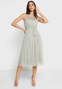 Little Mistress Bridesmaid Pleated Belt Detail Dress
