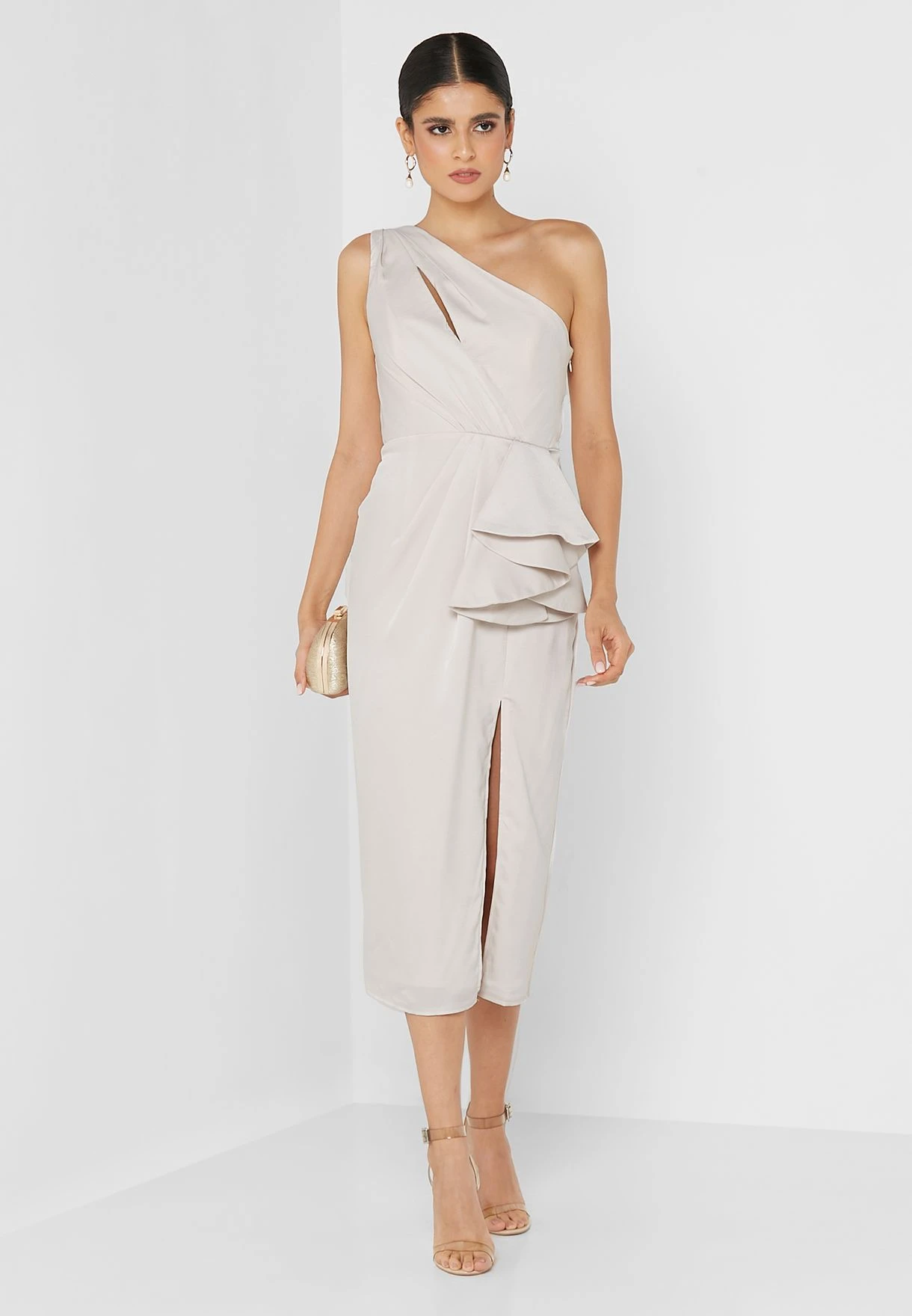 Little Mistress Front Split One Shoulder Bodycon Dress