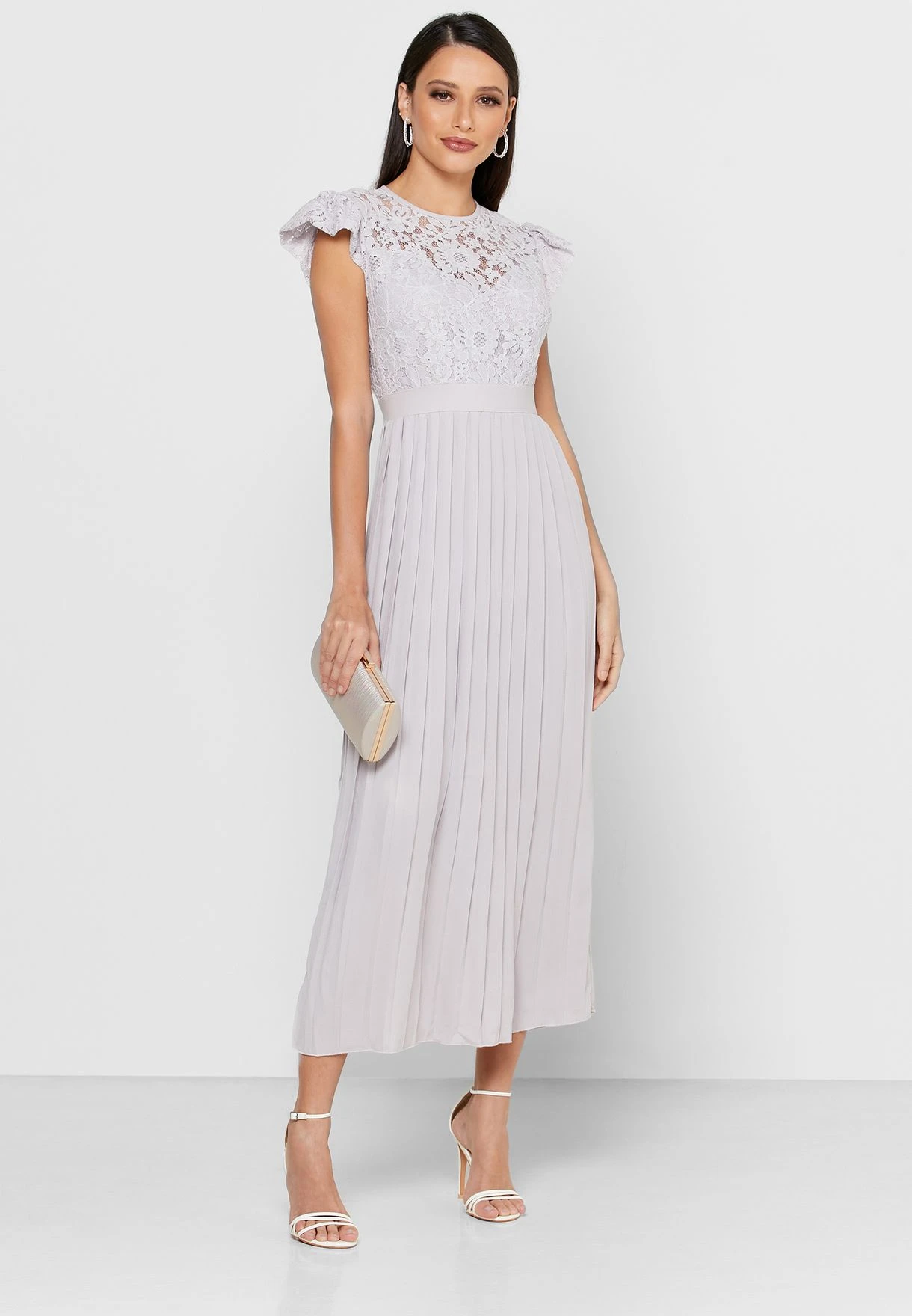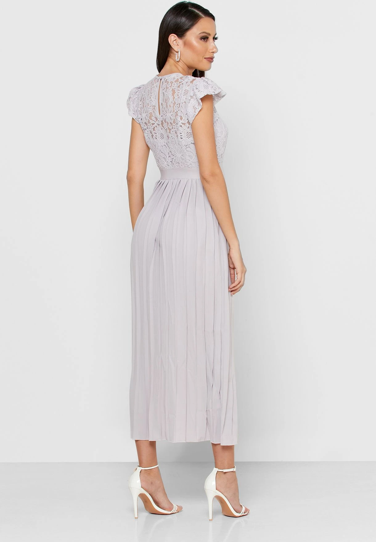 Little Mistress Lace Angel Sleeve Plisse Dress