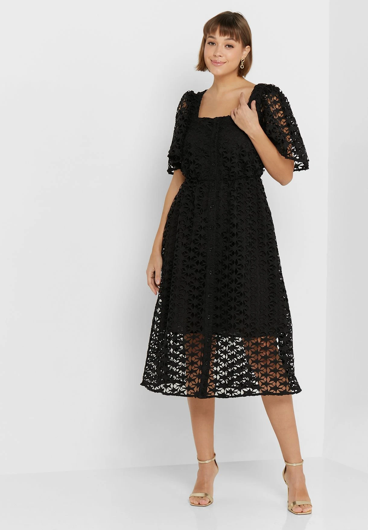 Little Mistress Lace Square Neck Button Down Dress