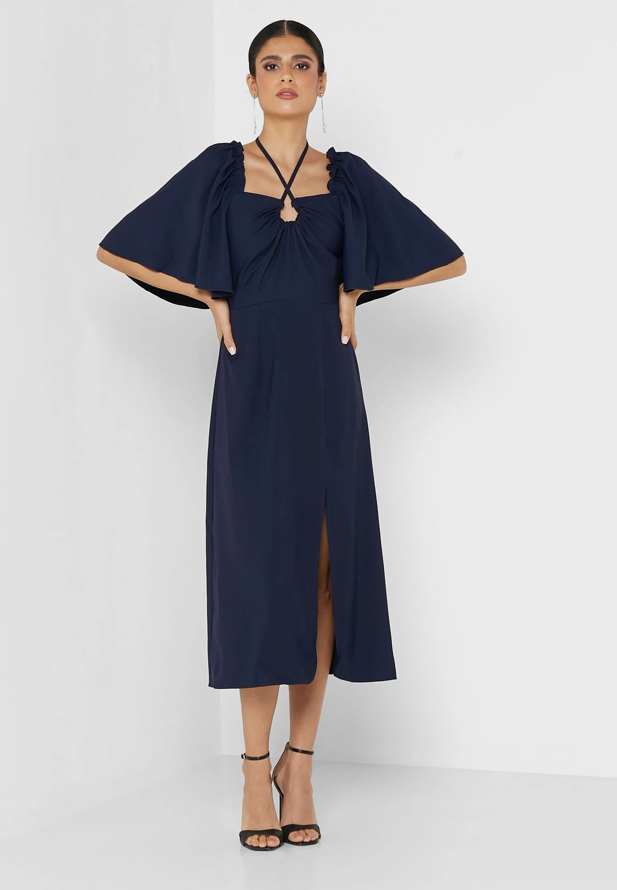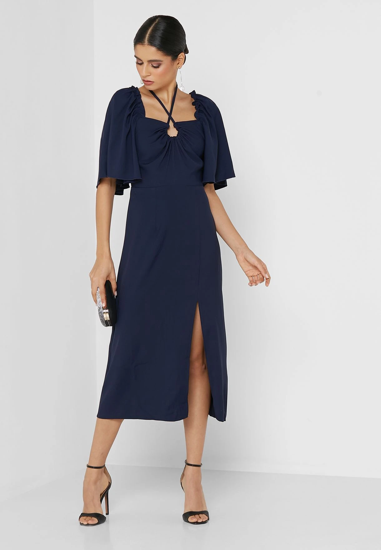 Little Mistress Navy Strap Detail Midaxi By Vogue Williams