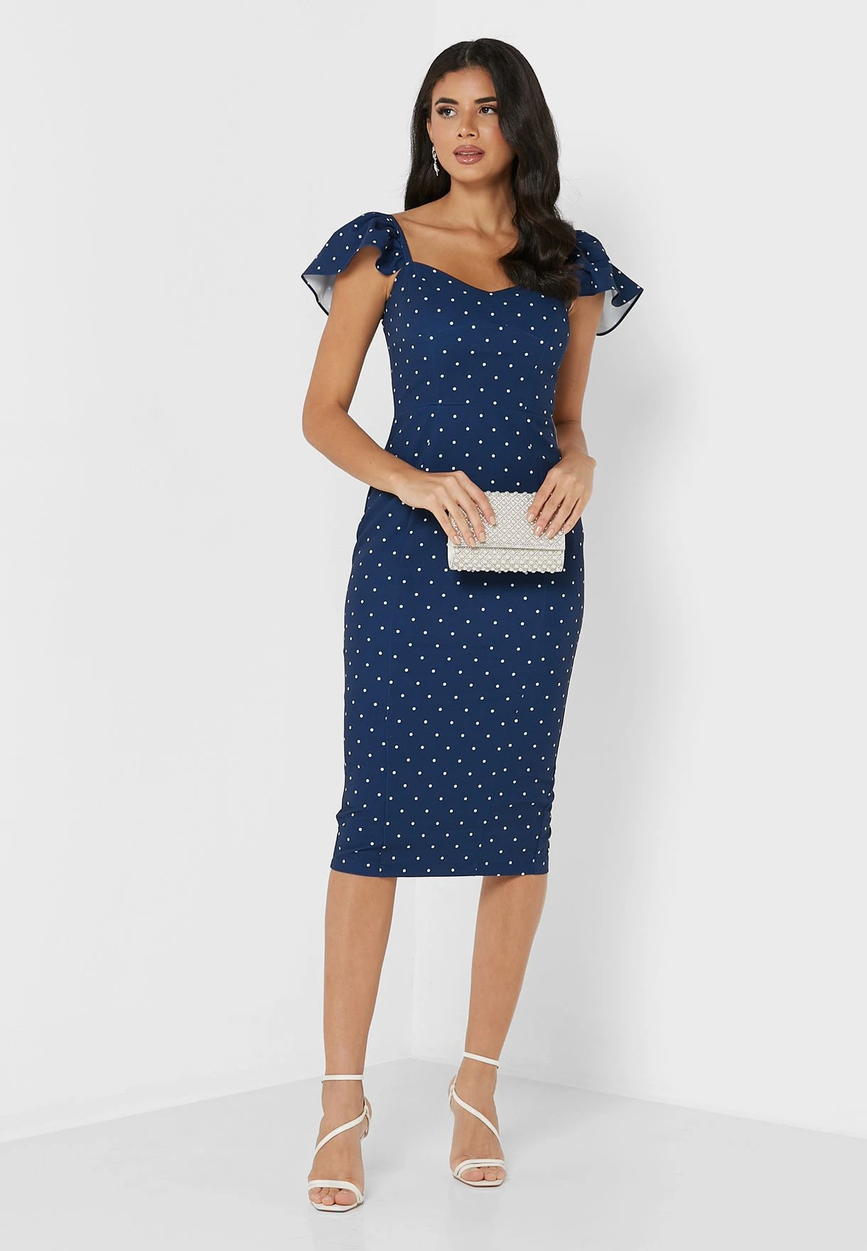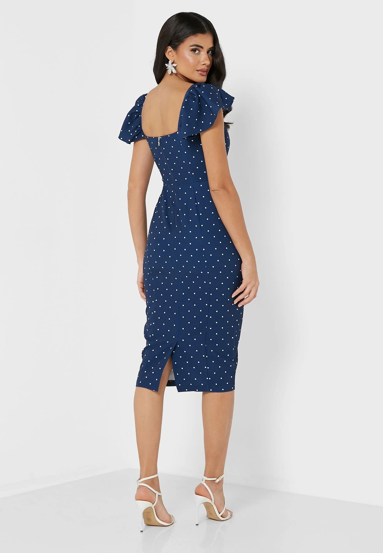 Little Mistress Polka Dot Sweetheart Neck Dress