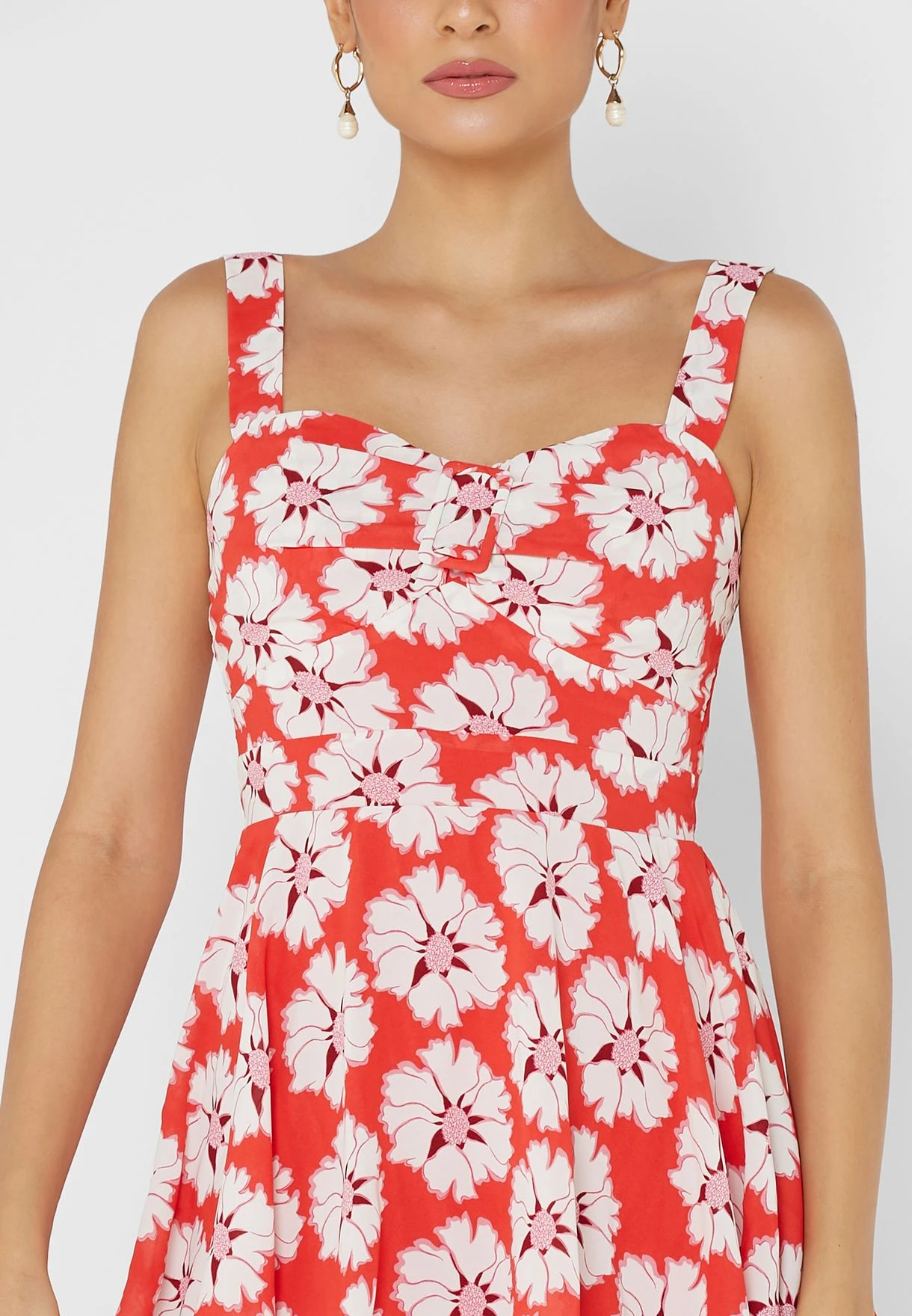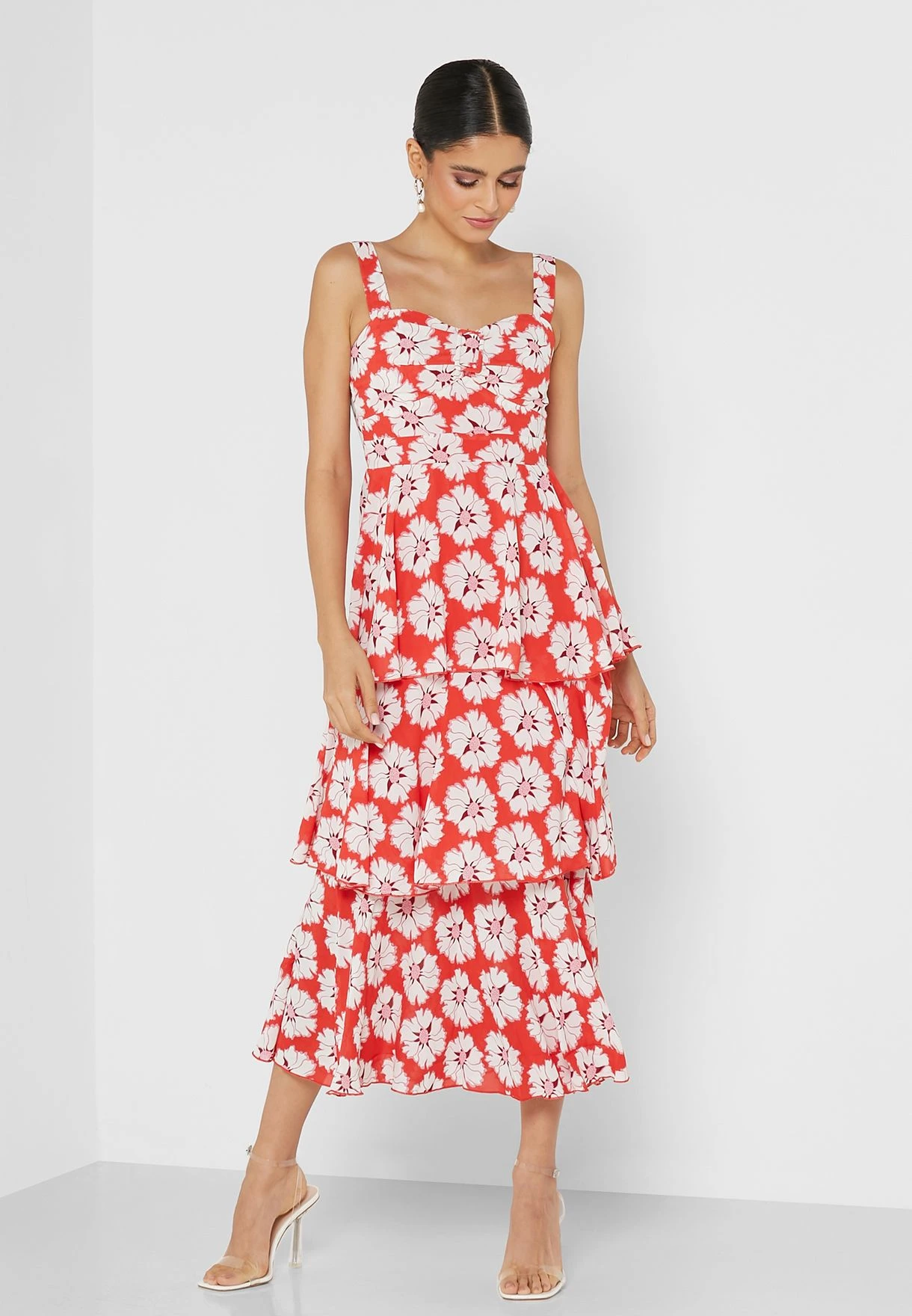 Little Mistress Red Floral Tiered Midaxi By Vogue Williams
