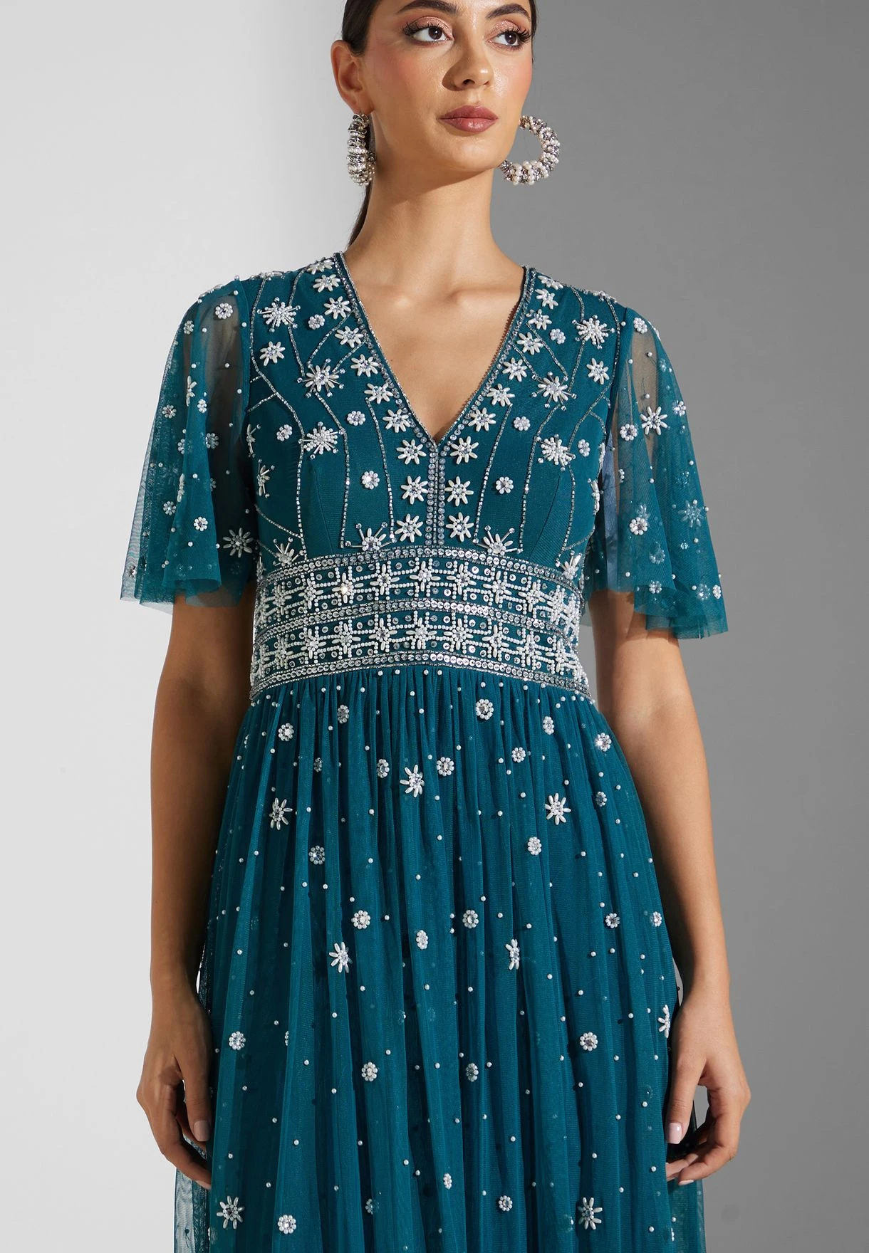 Mesh Detail Embellished Dress