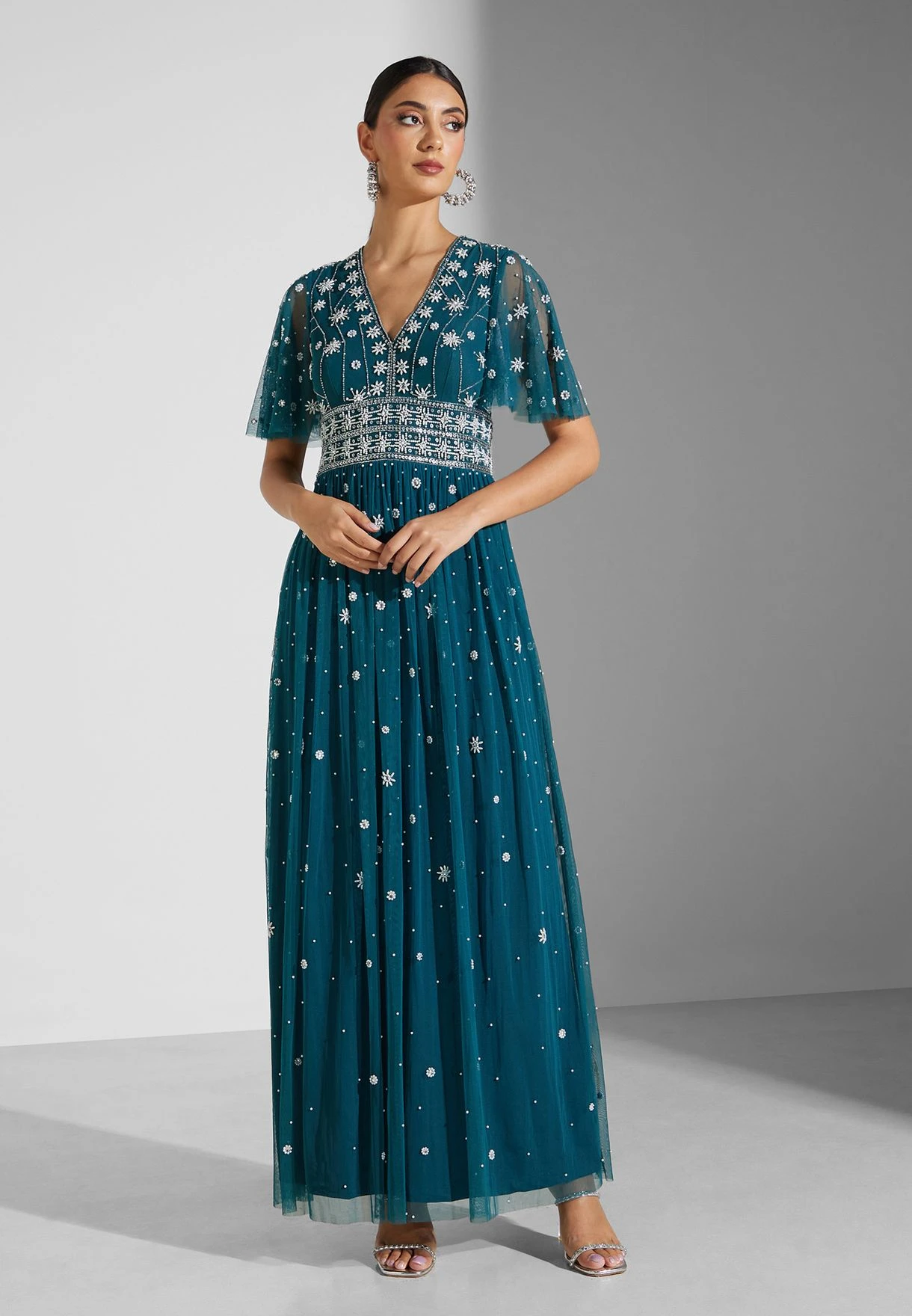 Feminine and glamorous, this outfit makes an alluring addition to your evening dress collection.