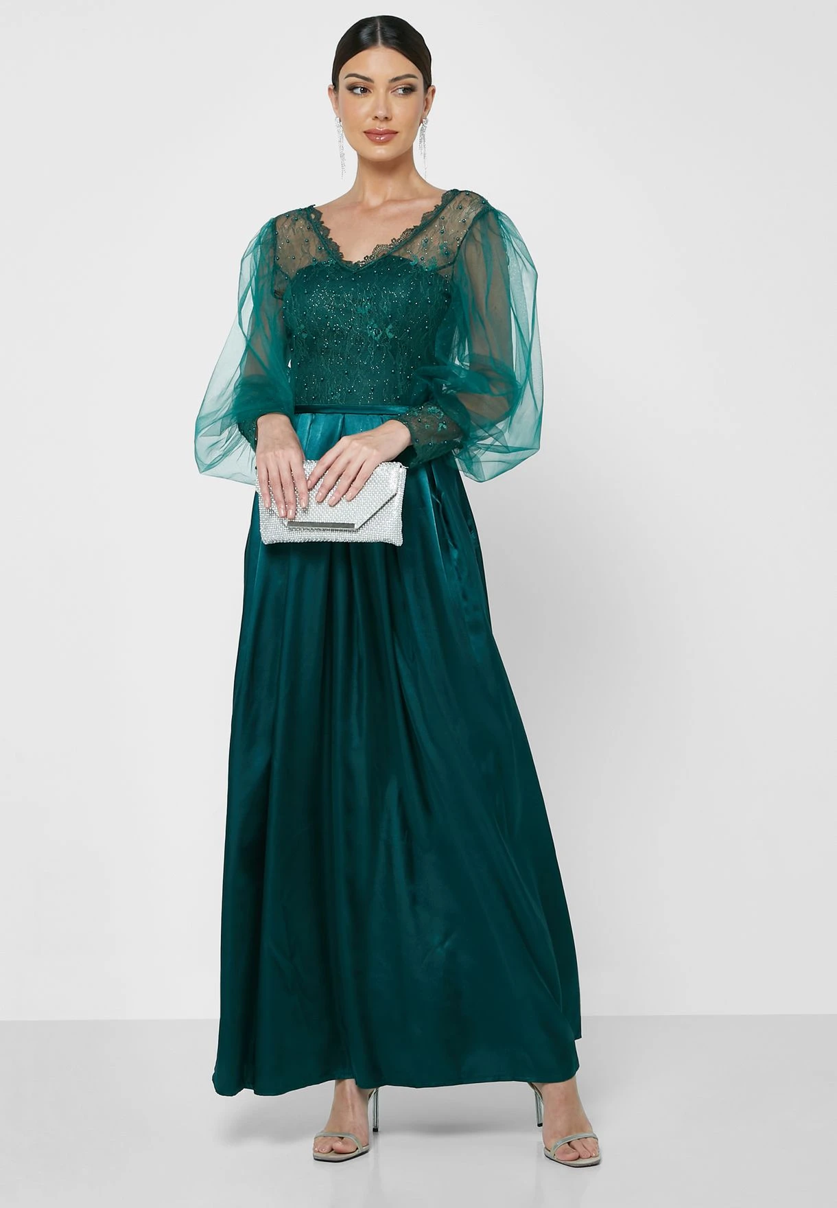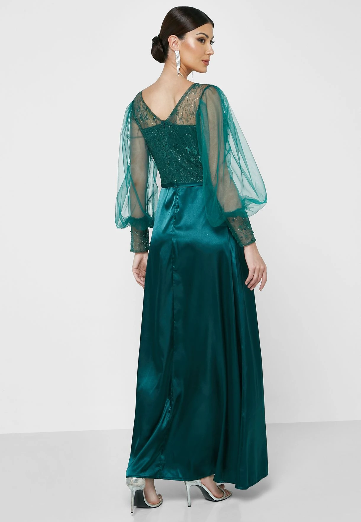 Mesh Sleeve Shimmer Dress