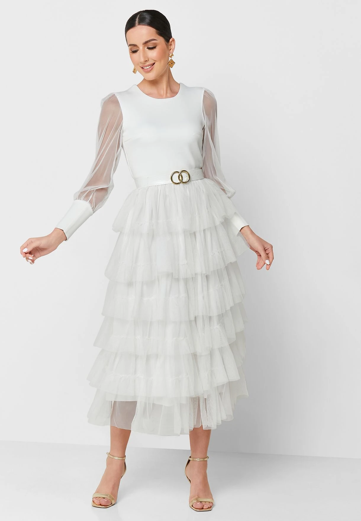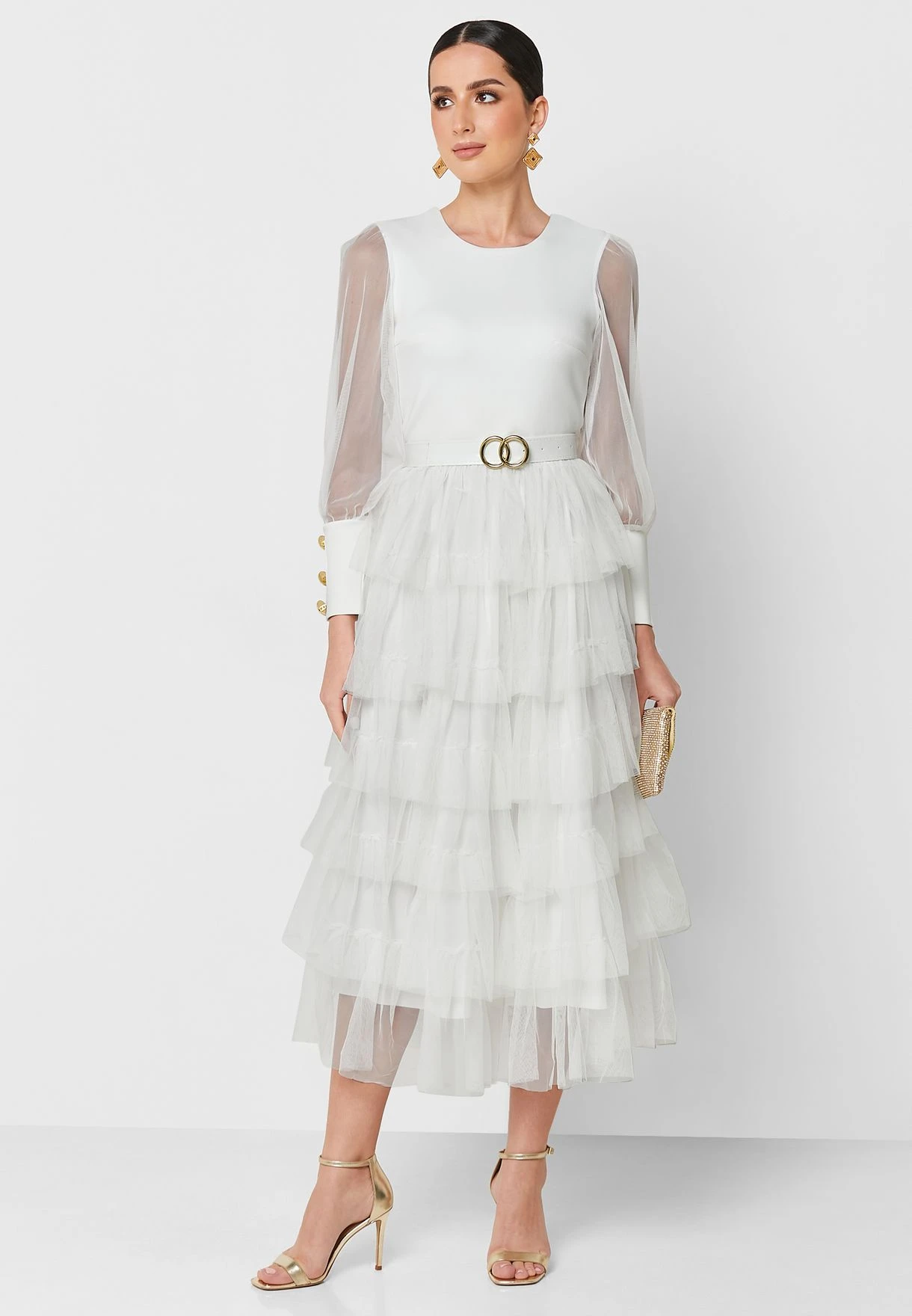 Be the first to review “Mesh Sleeve Tiered Dress” Cancel reply