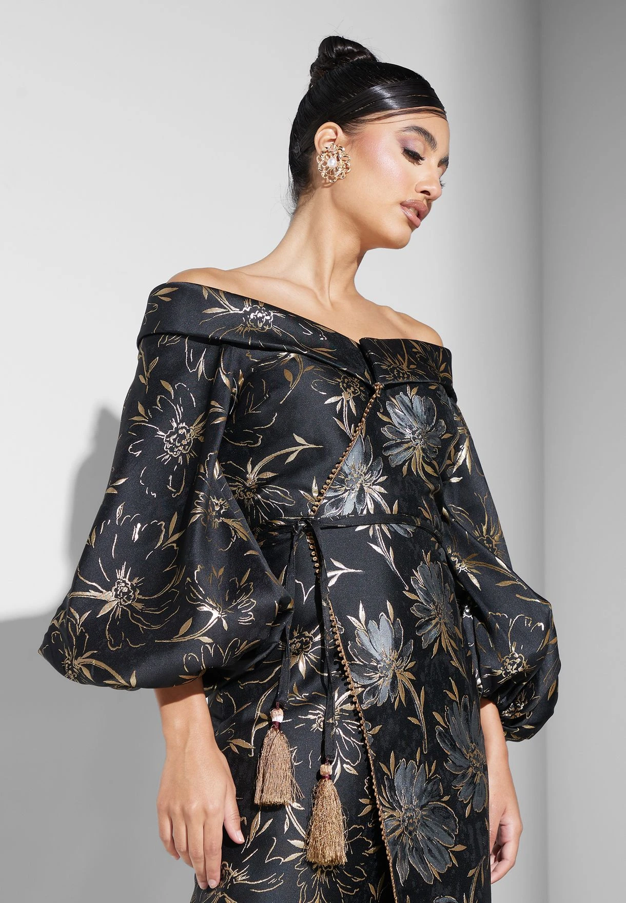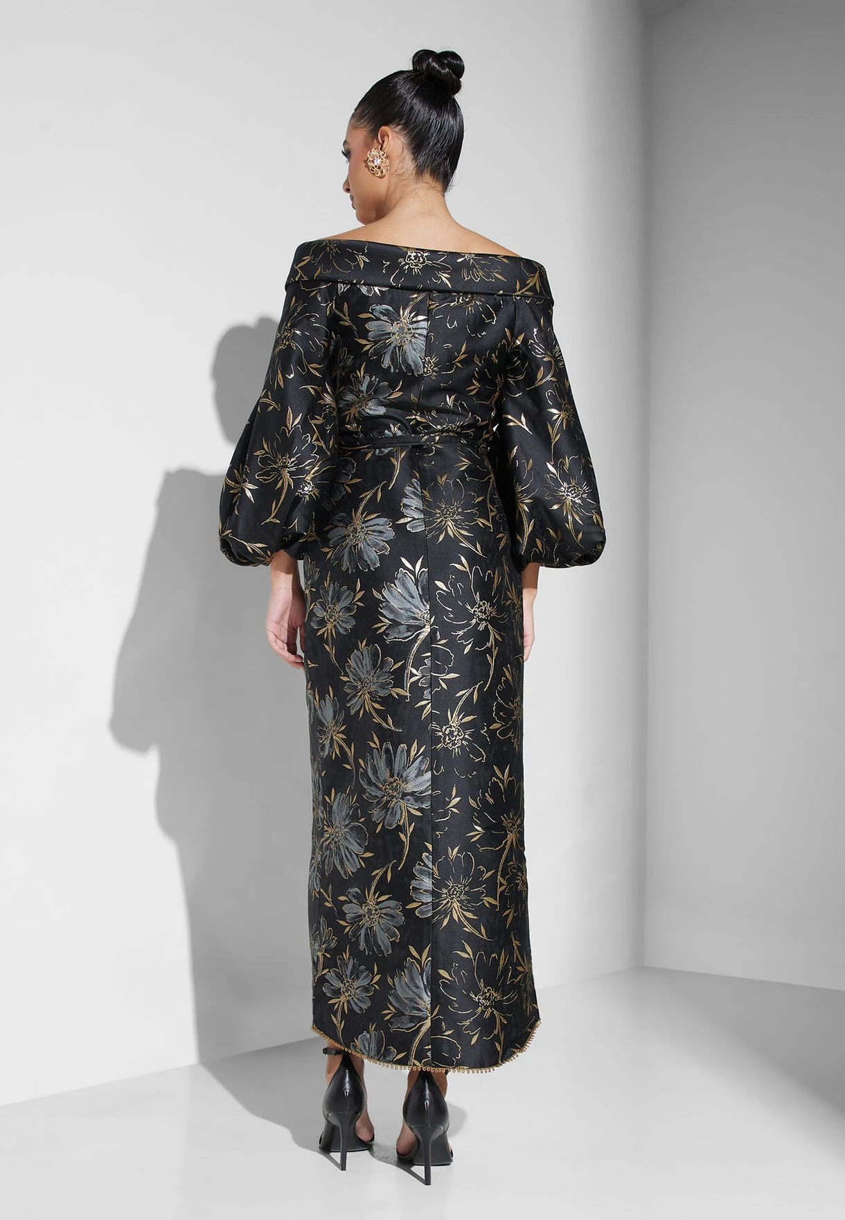 Defined by subtle glamour, this dress set evokes a sense of timeless elegance.