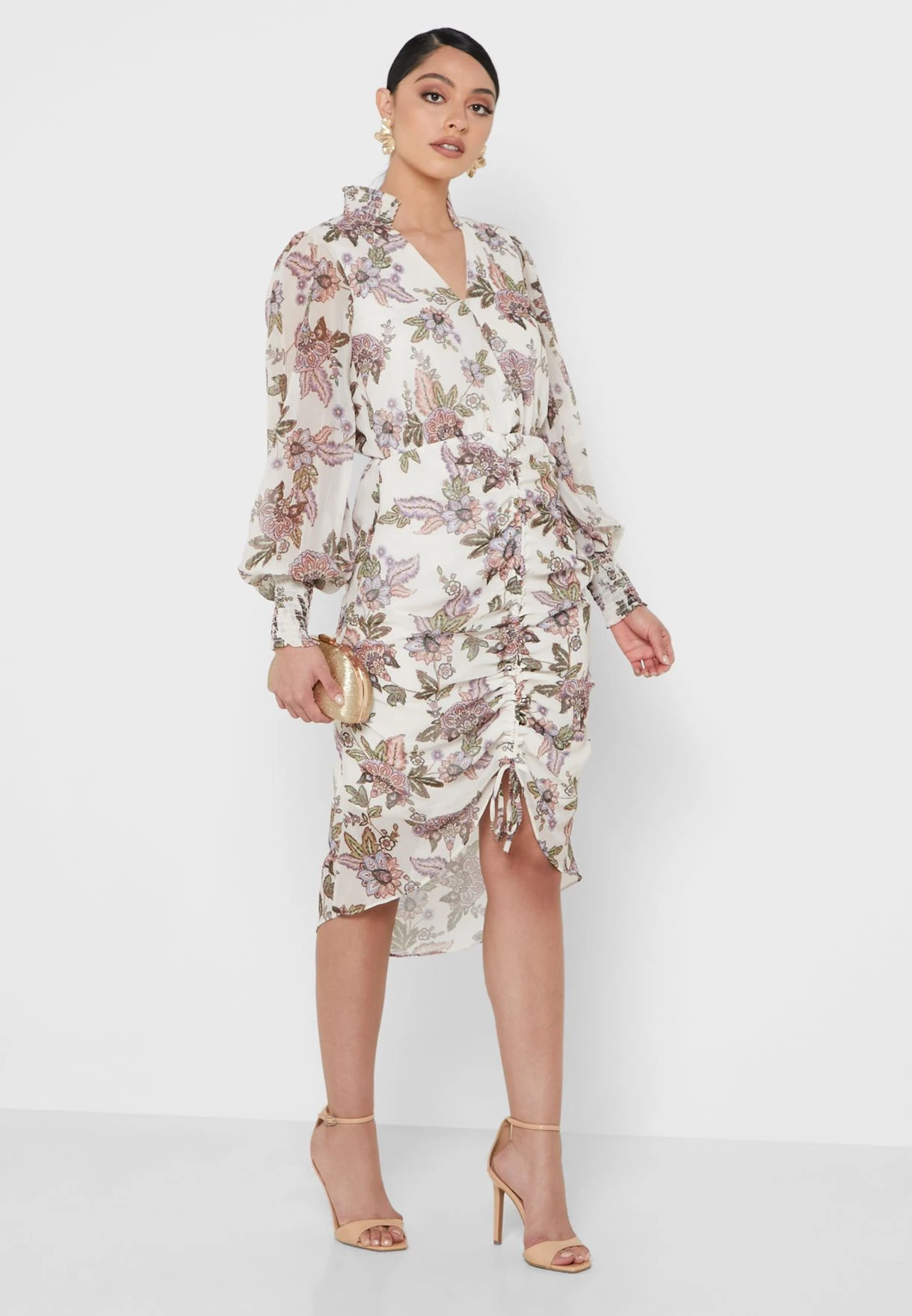Be the first to review “Plunge Neck Balloon Sleeve Printed Ruched Dress” Cancel reply