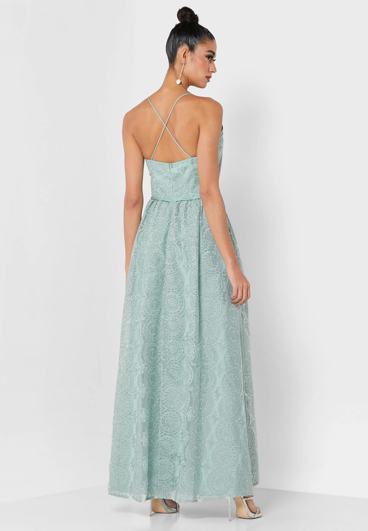 Be the first to review “Plunge Neck Strappy Mesh Detail Embroidered Dress” Cancel reply