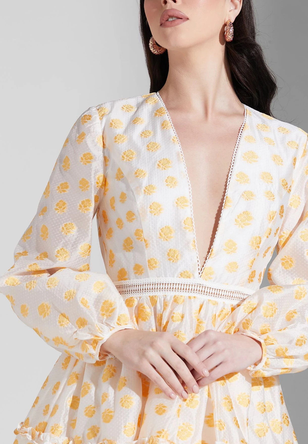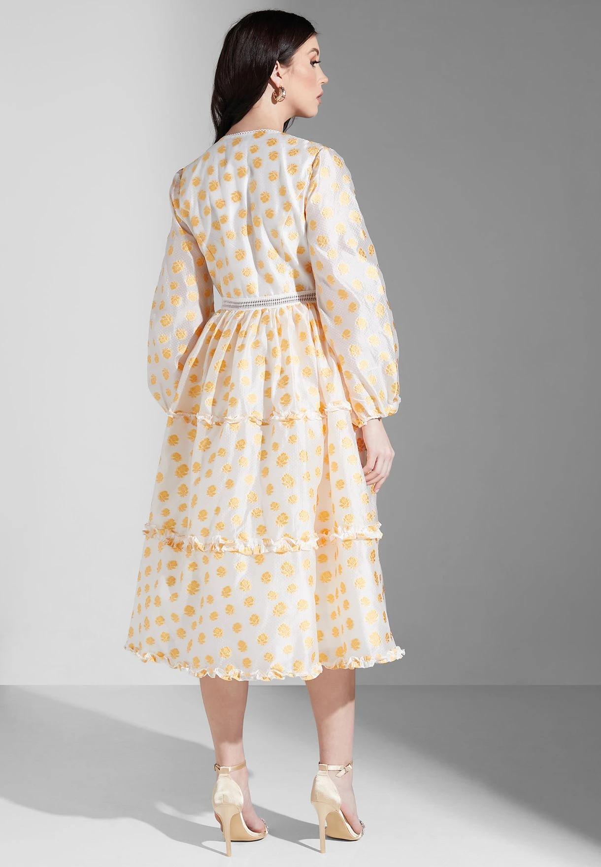 This flattering Floral Dress is intended for glamorous occasions and portrays an elegantly feminine aesthetic.