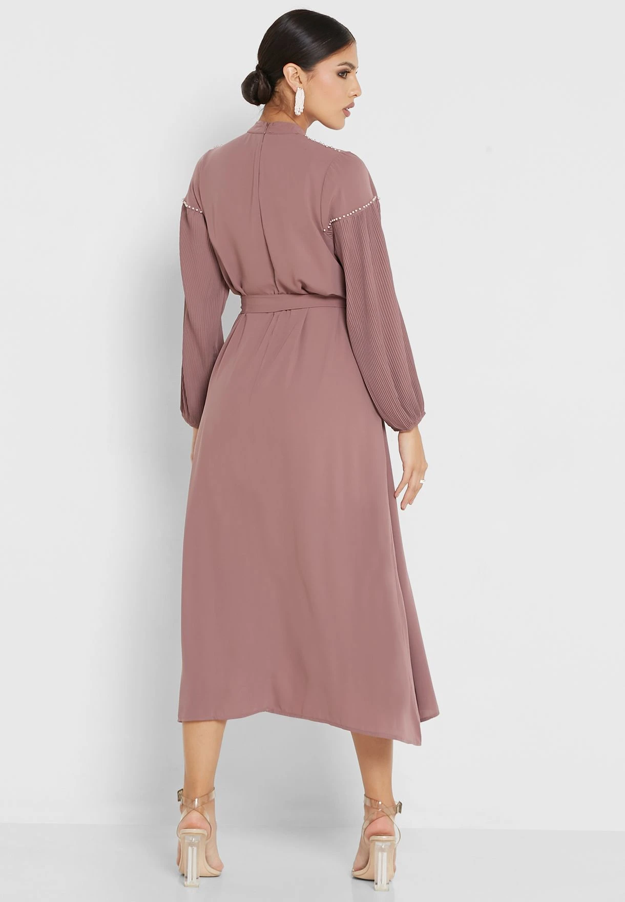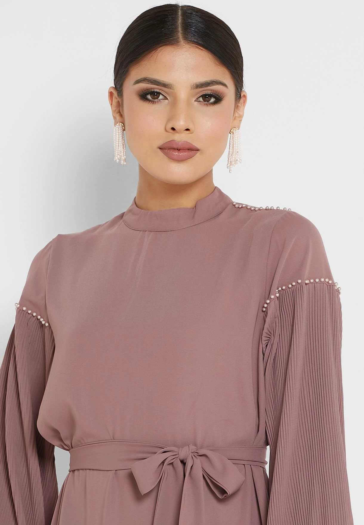 Saturated with sparkling beads, make this dress the first choice for modest wear and special occasions.