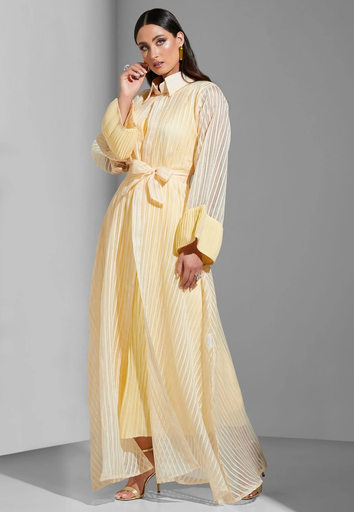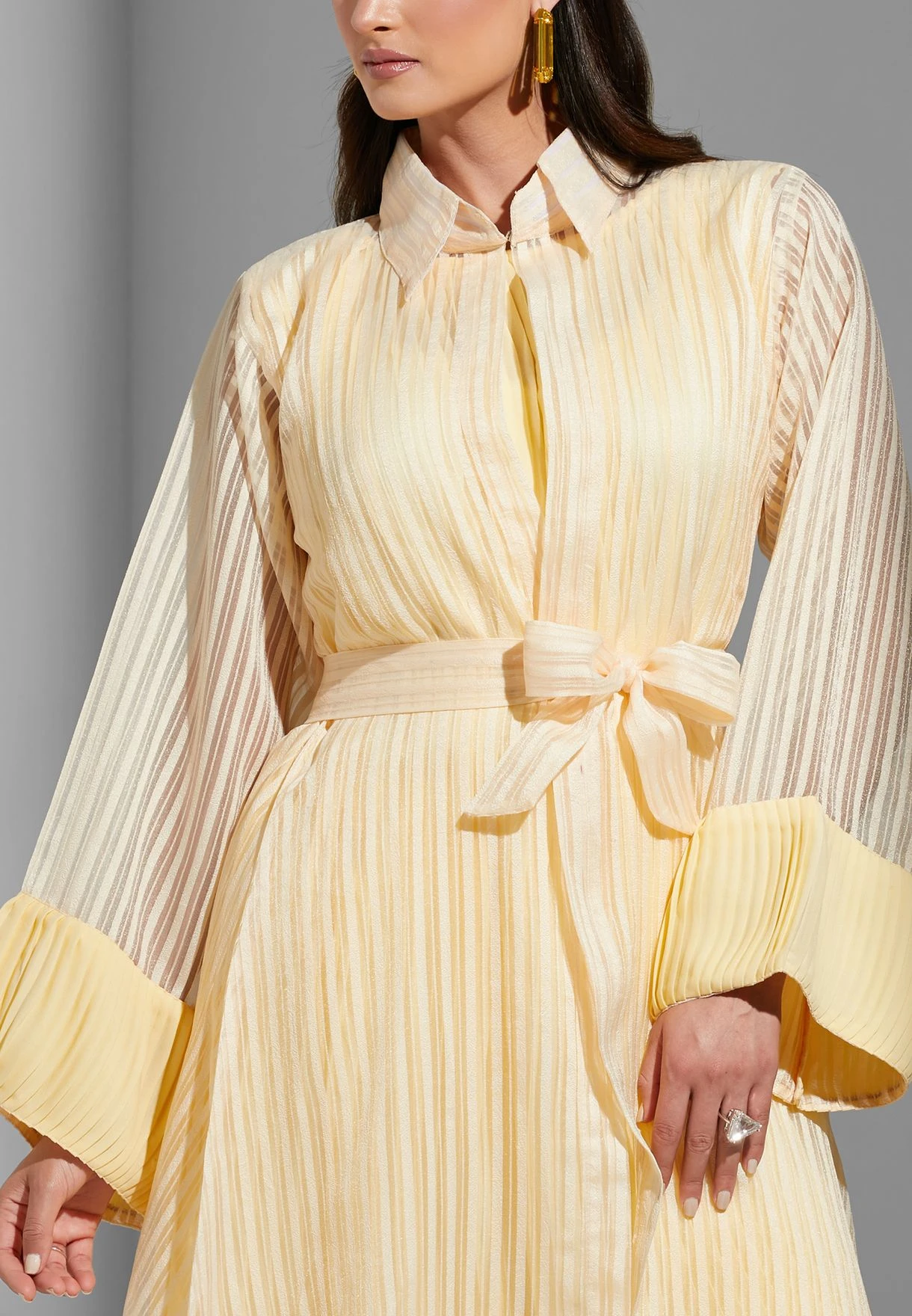 Self Striped Belted Shirt Dress
