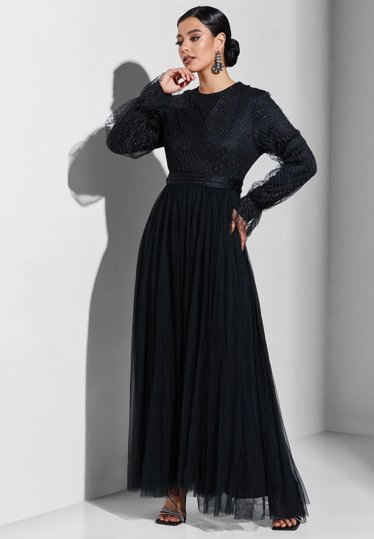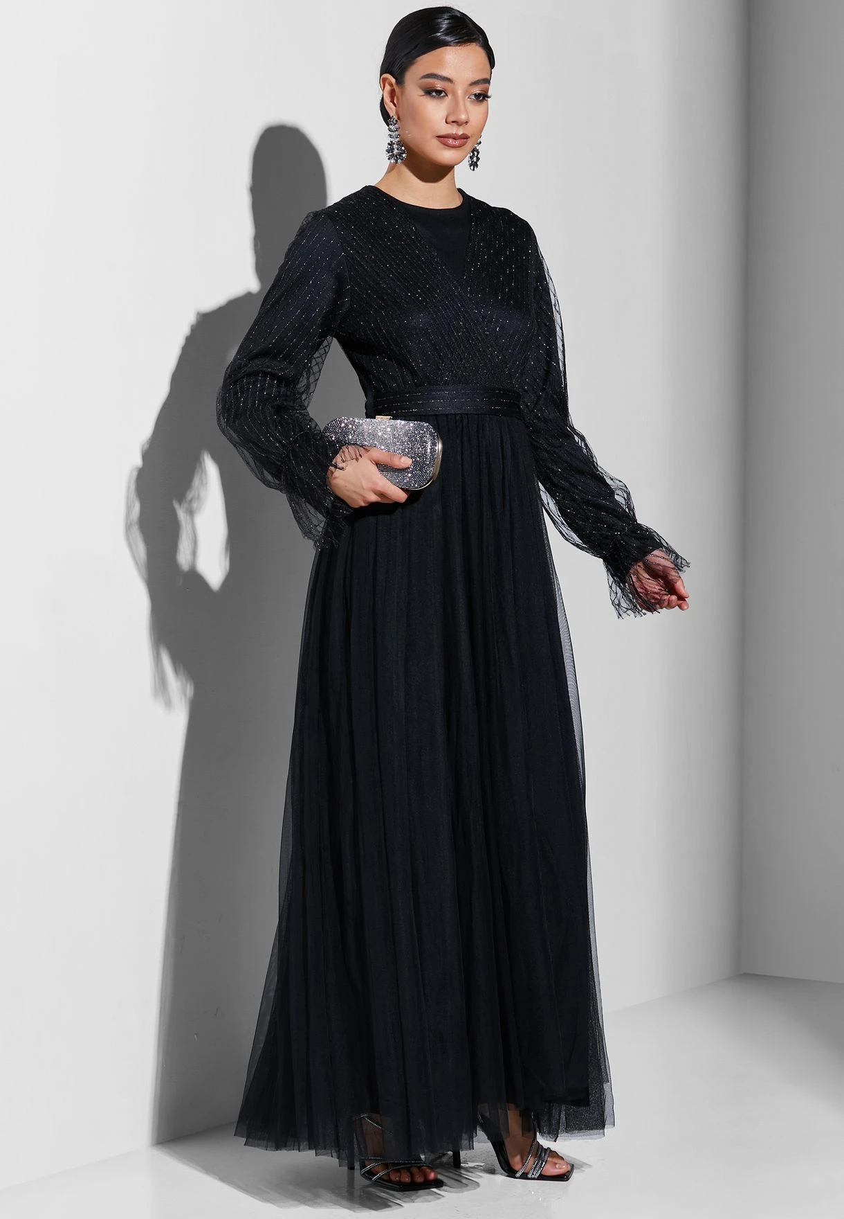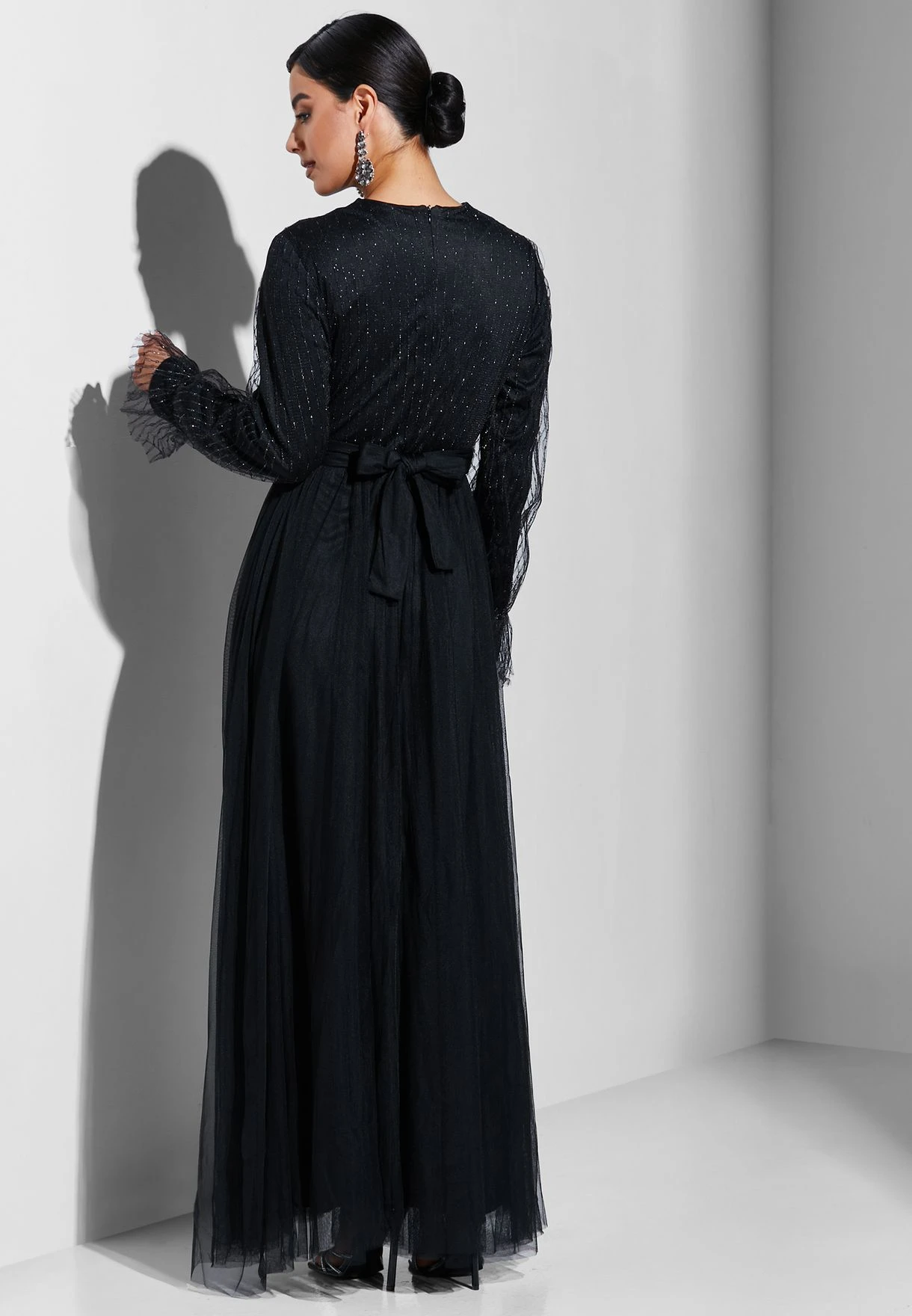 Completed with luxurious details, this dress brings a lavish finishing touch to your evening edits.