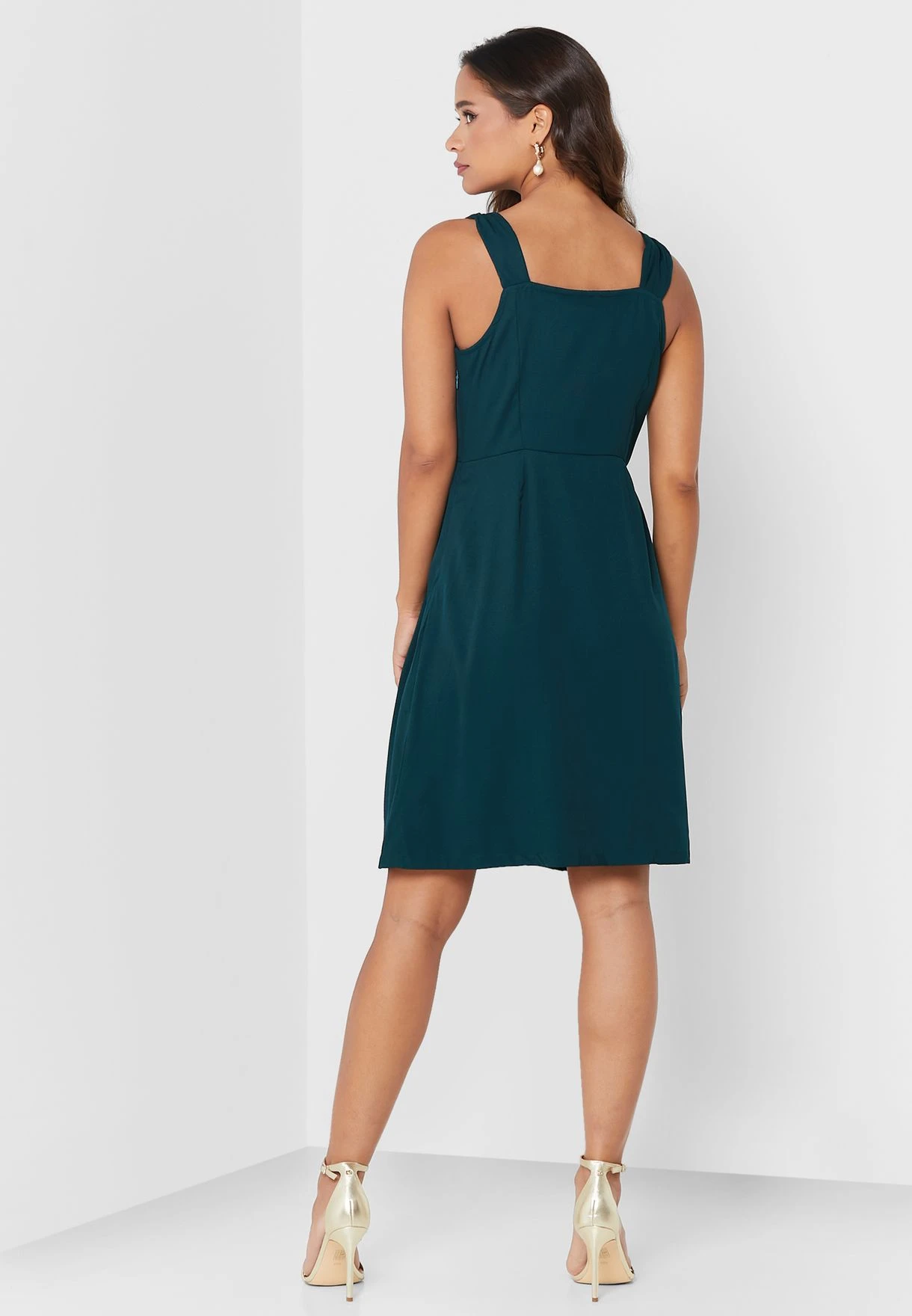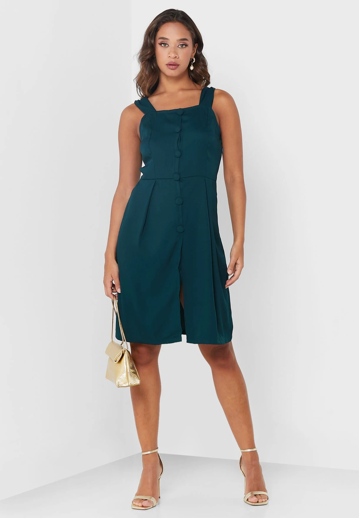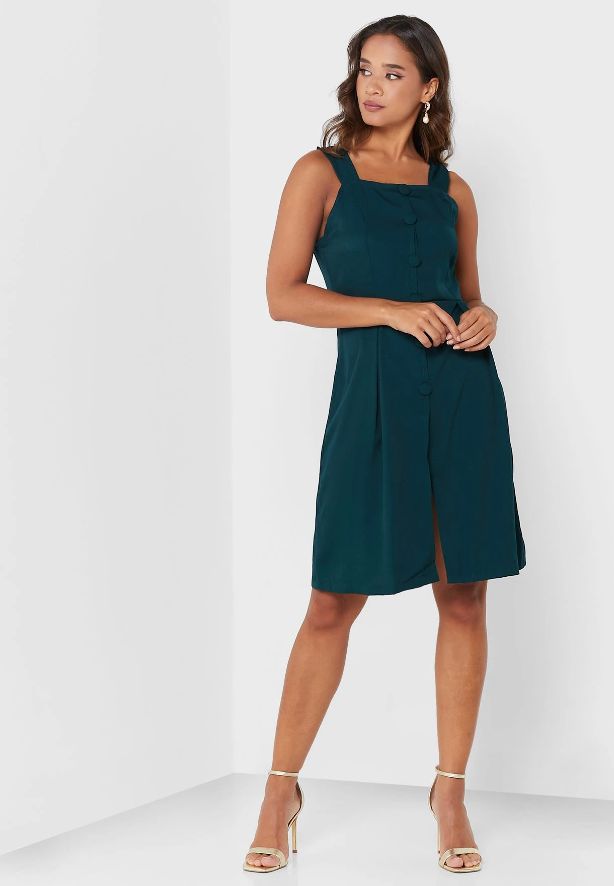 Square Neck Button Detail Dress