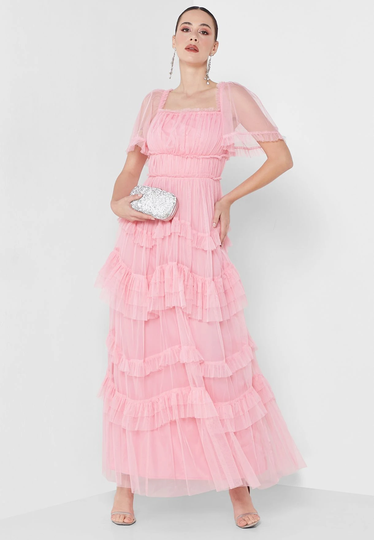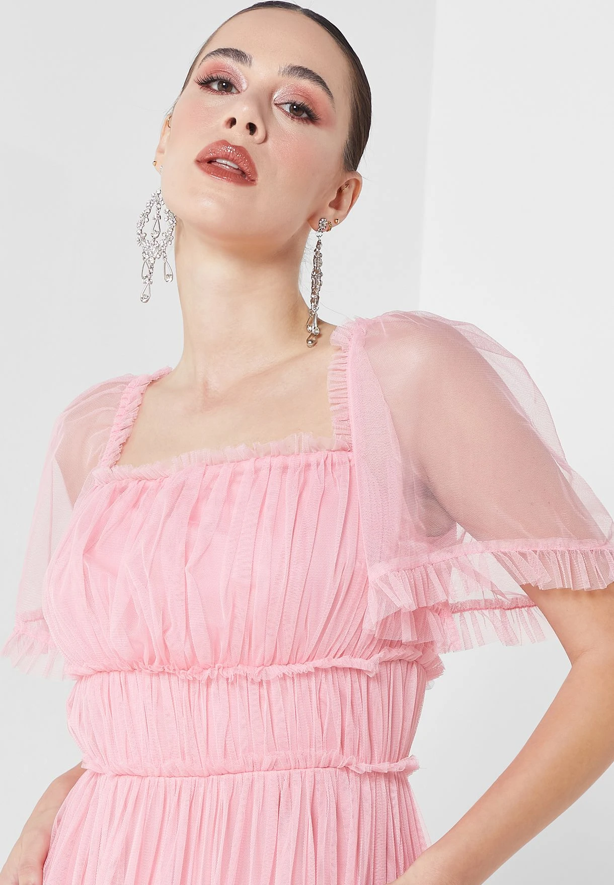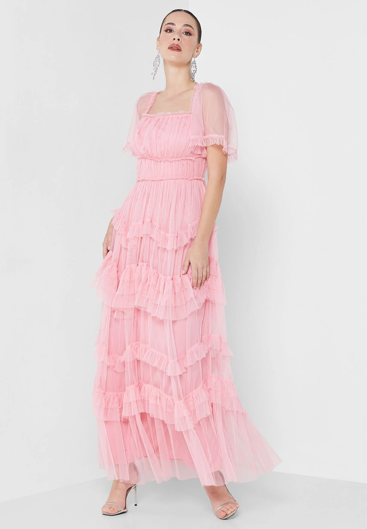 Be the first to review “Square Neck Ruched Ruffle Dress” Cancel reply