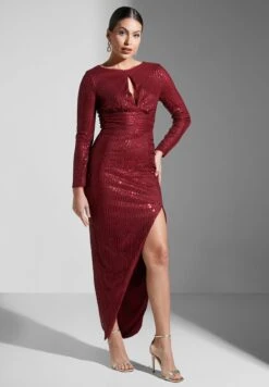 TFNC Side Split Ruched Sequin Detail Keyhole Dress