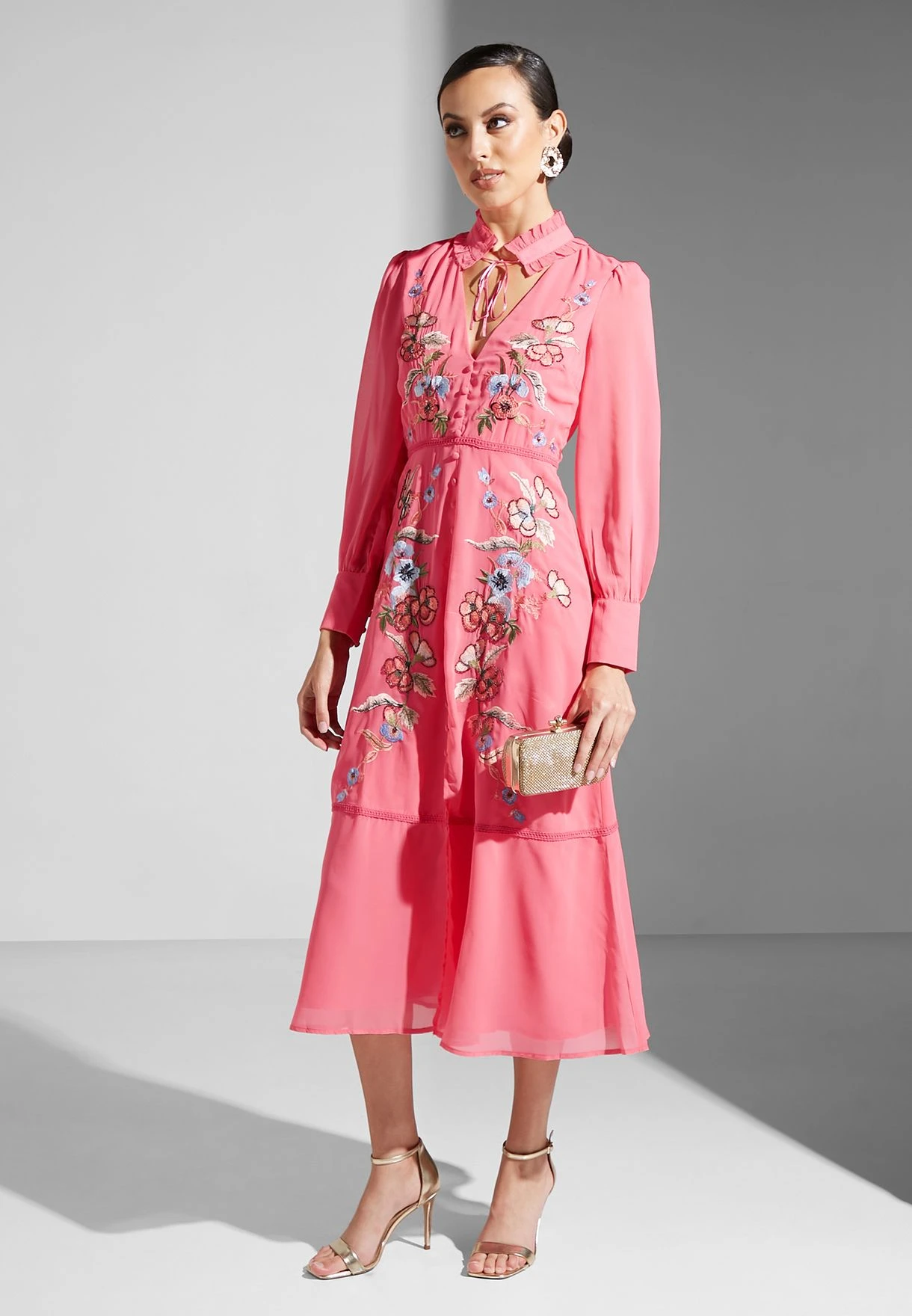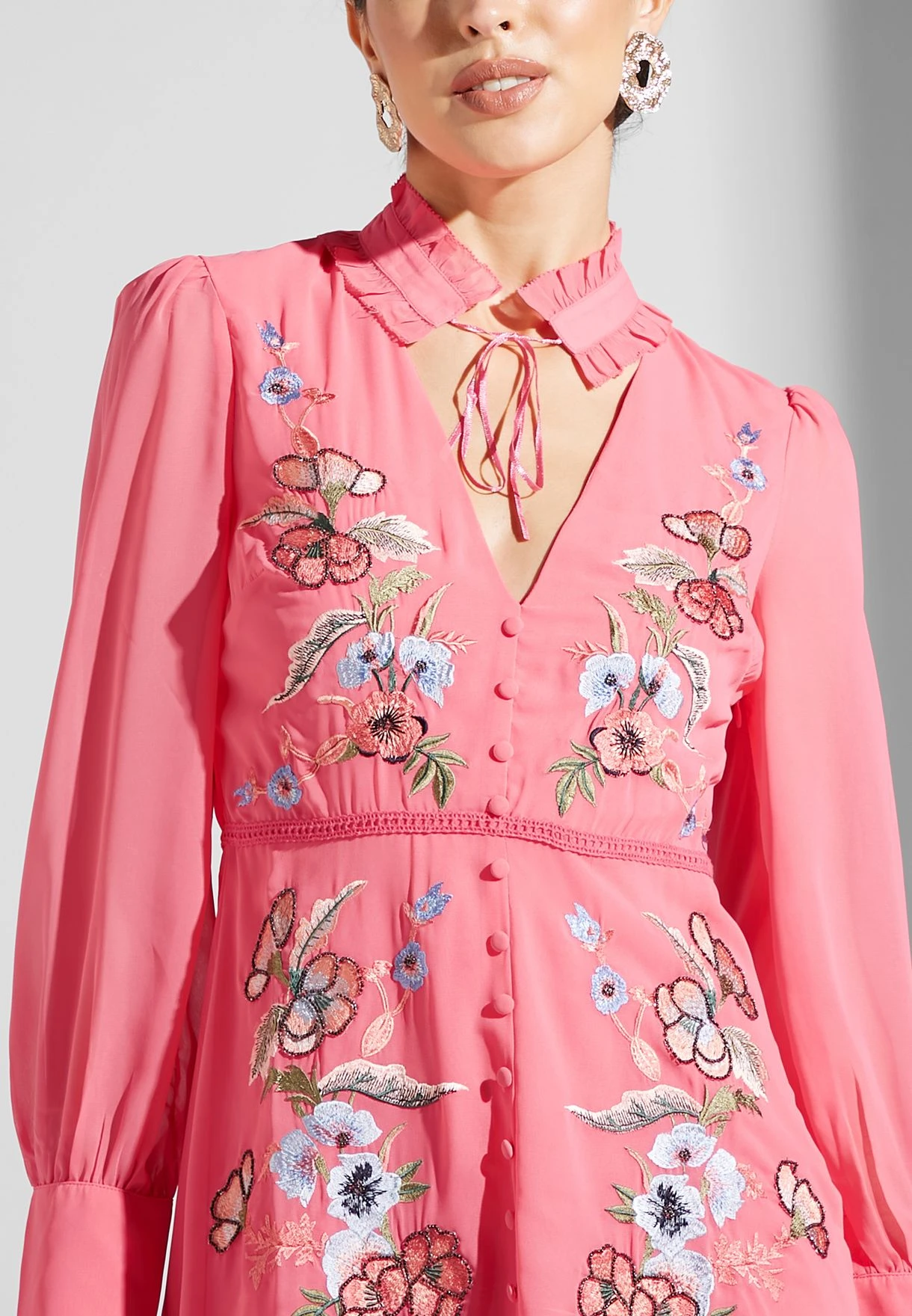 Be the first to review “Tie Neck Embroidered Button Detail Dress” Cancel reply