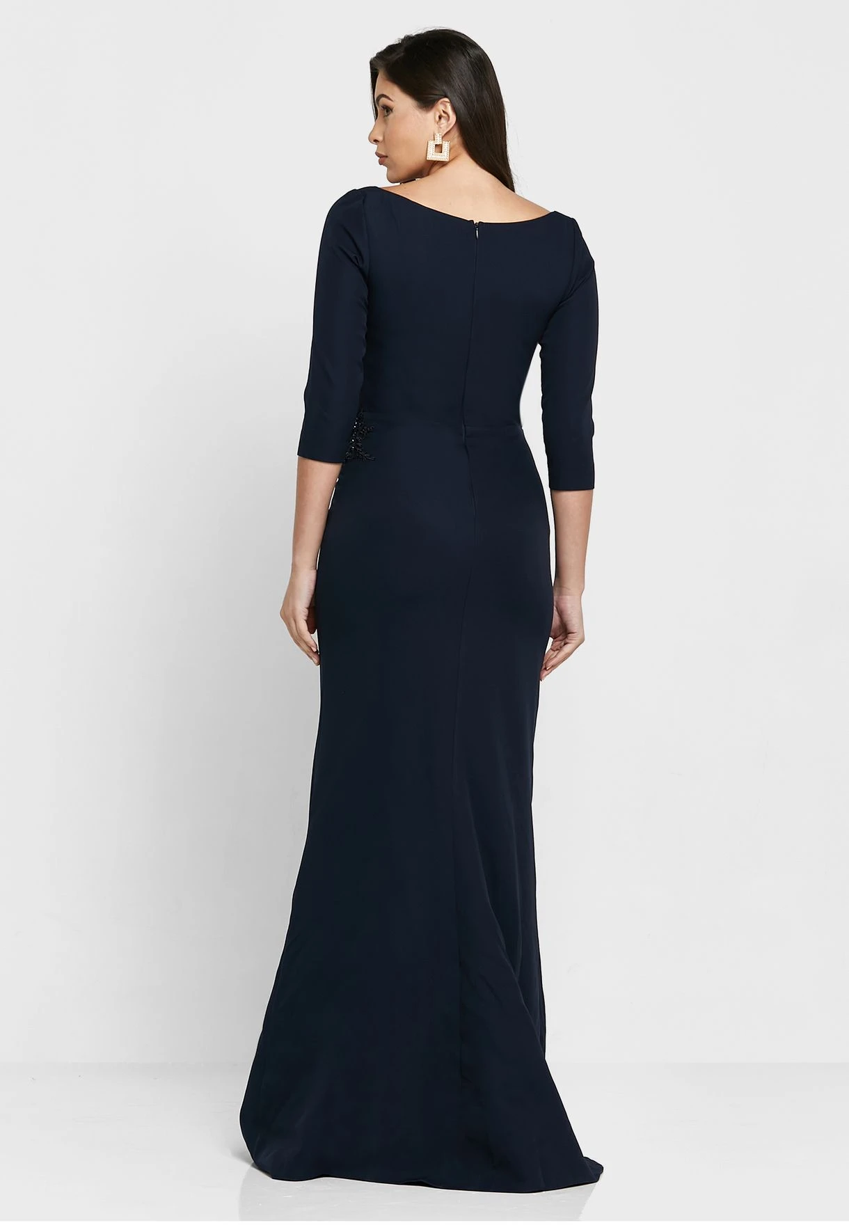 Completed with luxurious details, this dress brings a lavish finishing touch to your evening edits.