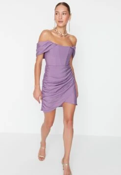 Trendyol Bardot Asymmetric Hem Ruffle Dress