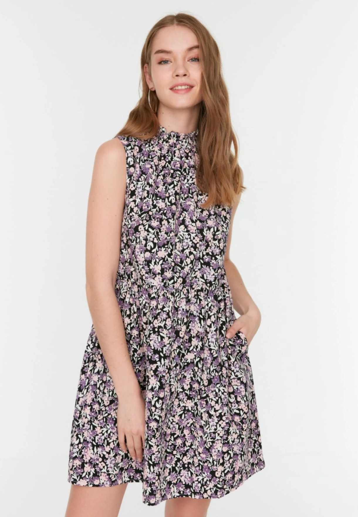 Trendyol High Neck Floral Print Pocket Detail Dress