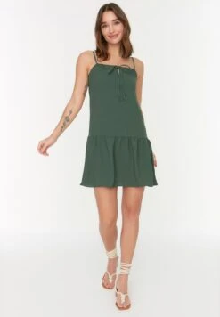 Trendyol Tie Detail Strappy Ruffle Hem Dress